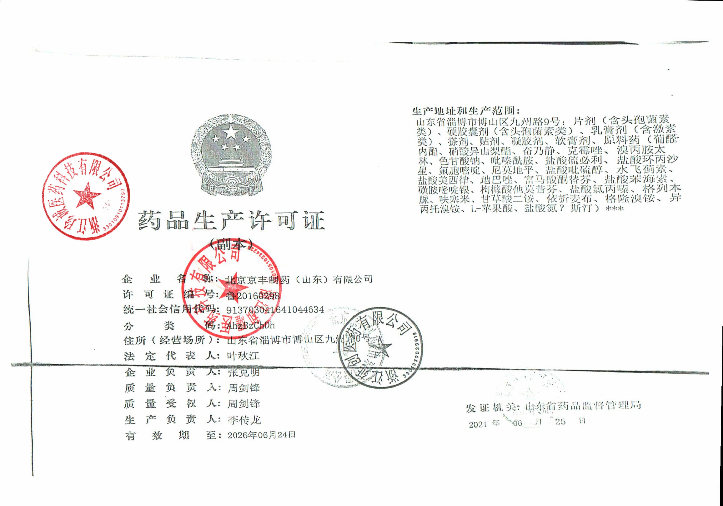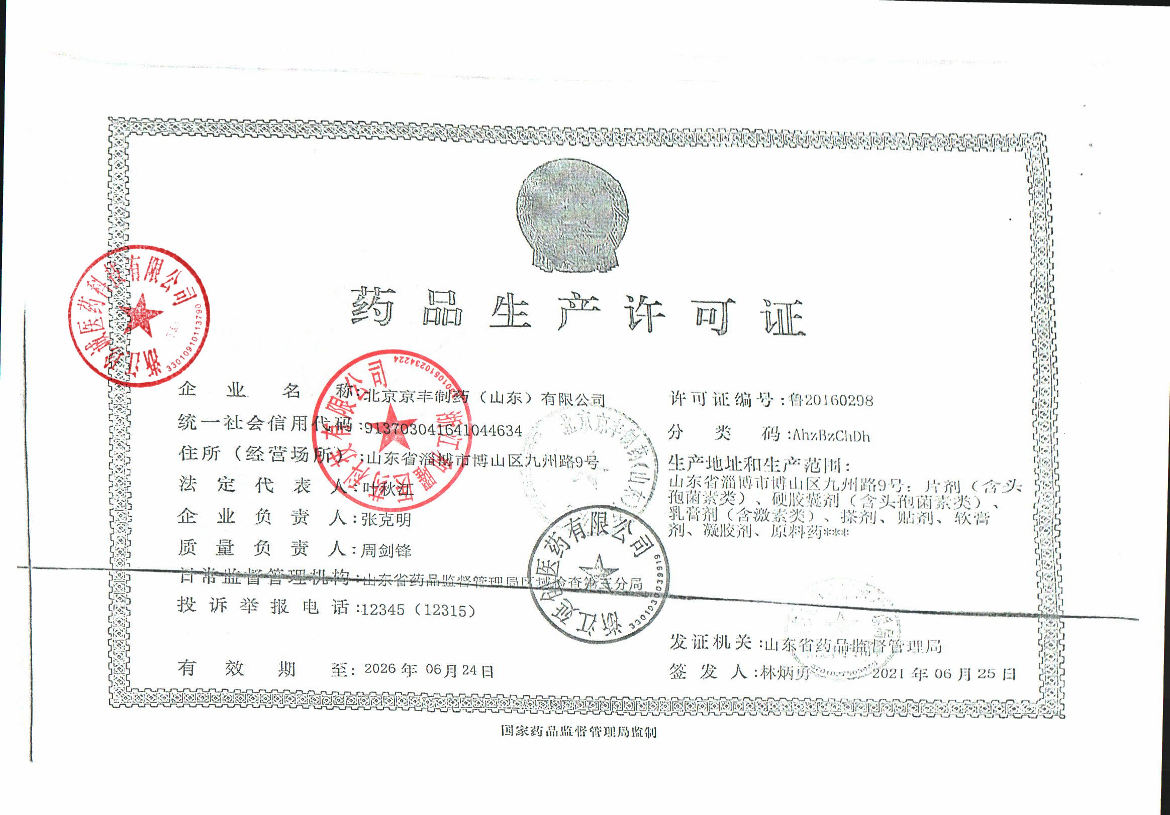 | 6 | Z99009300 | 北京京丰制药(山东)有限公司 | 许可证.jpg | Jan 22, 2026 2:48:43 PM | 查看下载 | |