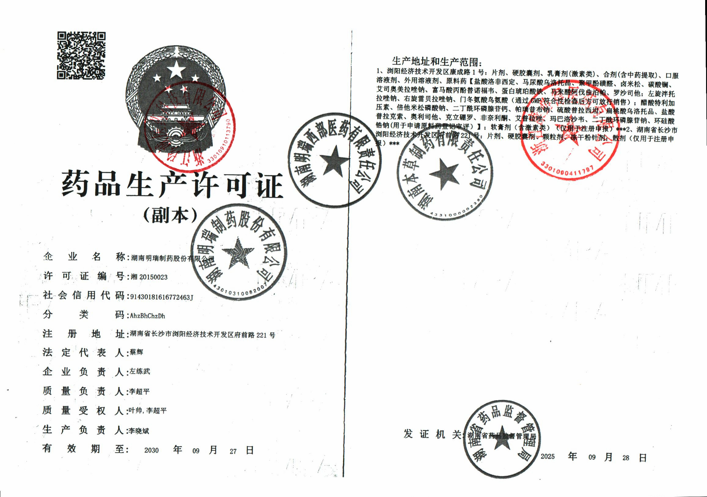 1 Z99010380 湖南明瑞制药股份有限公司 许可证 (2).jpg Nov 28, 2025 3:47:31 PM 查看下载
