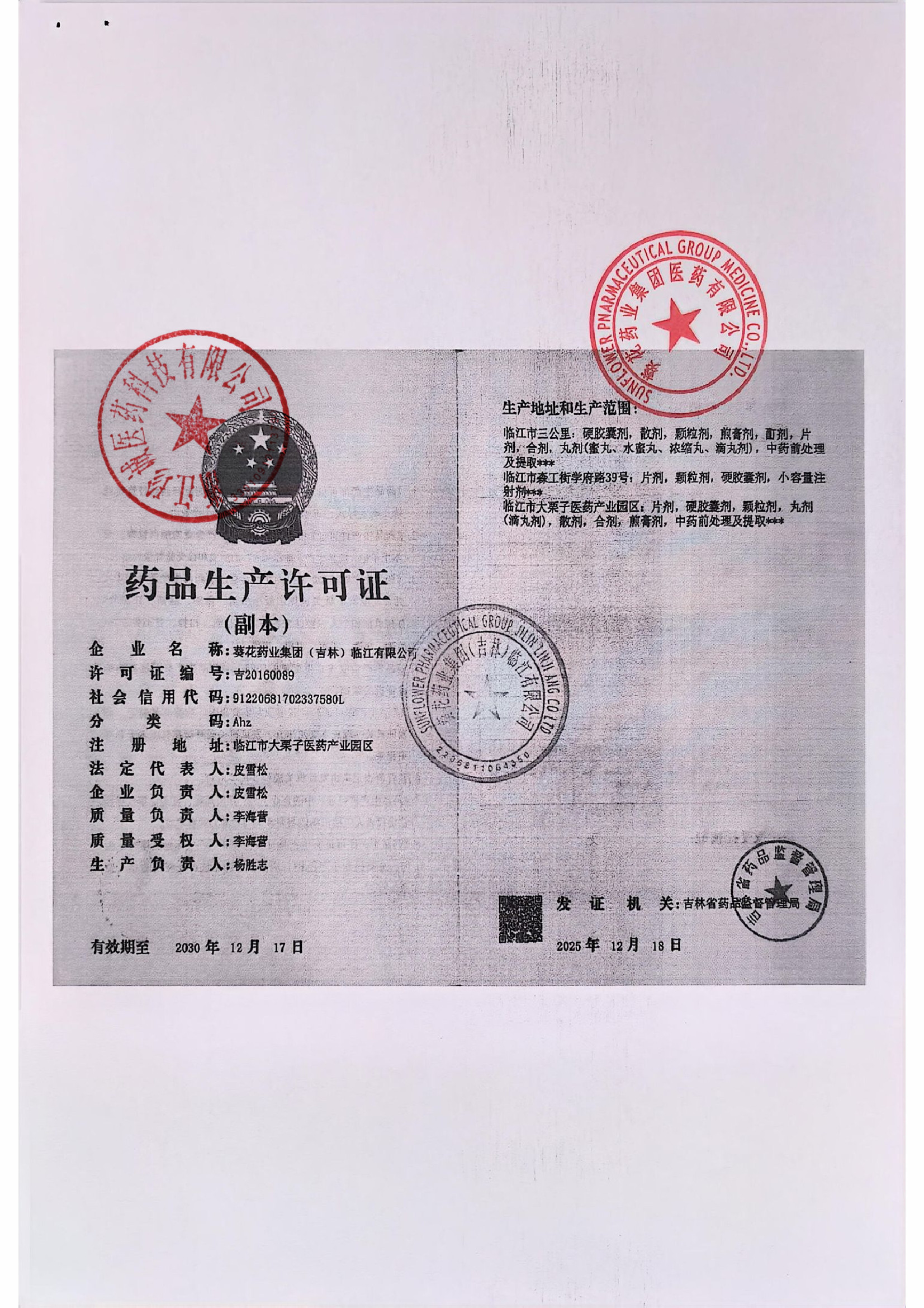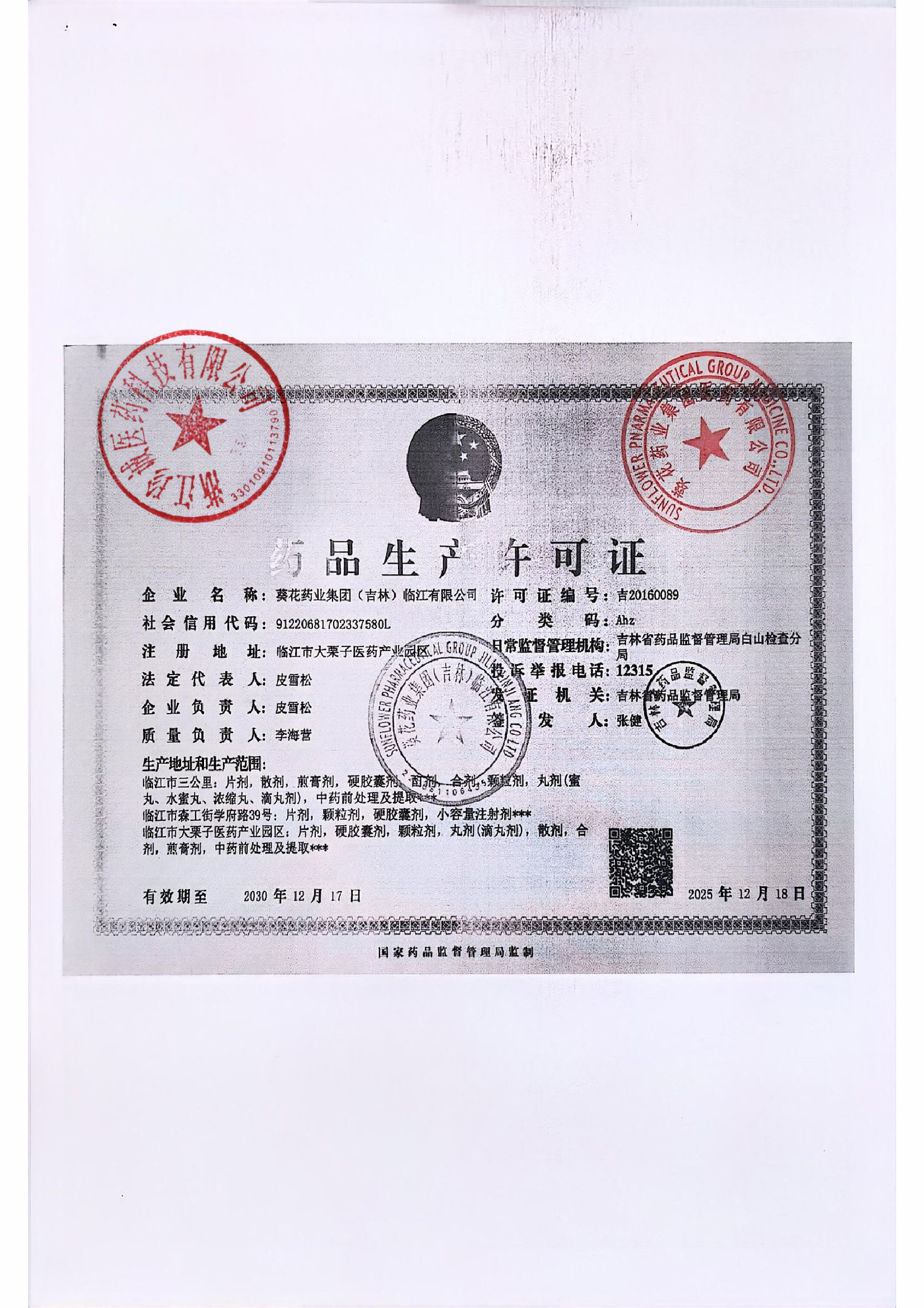 | 4 | Z99010840 | 葵花药业集团(吉林)临江有限公司 | 许可证 (2).jpg | Apr 8, 2026 3:43:33 PM | 查看下载 |