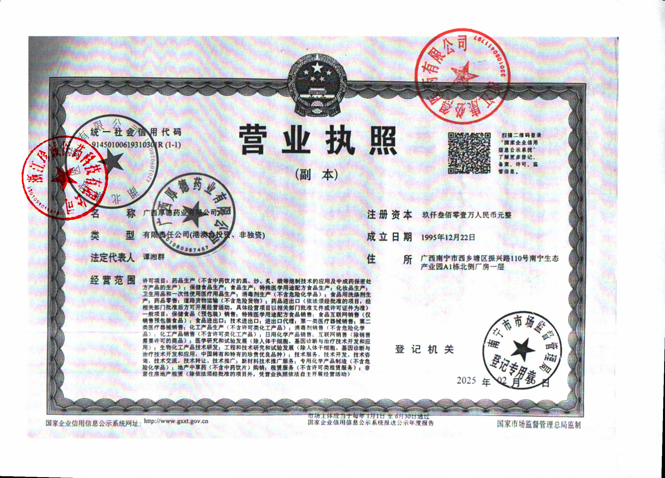 2 | Z99011500 | 广西厚德药业有限公司 | 营业执照.jpg | Sep 17, 2025 1:39:11 PM | 查看下载 | |