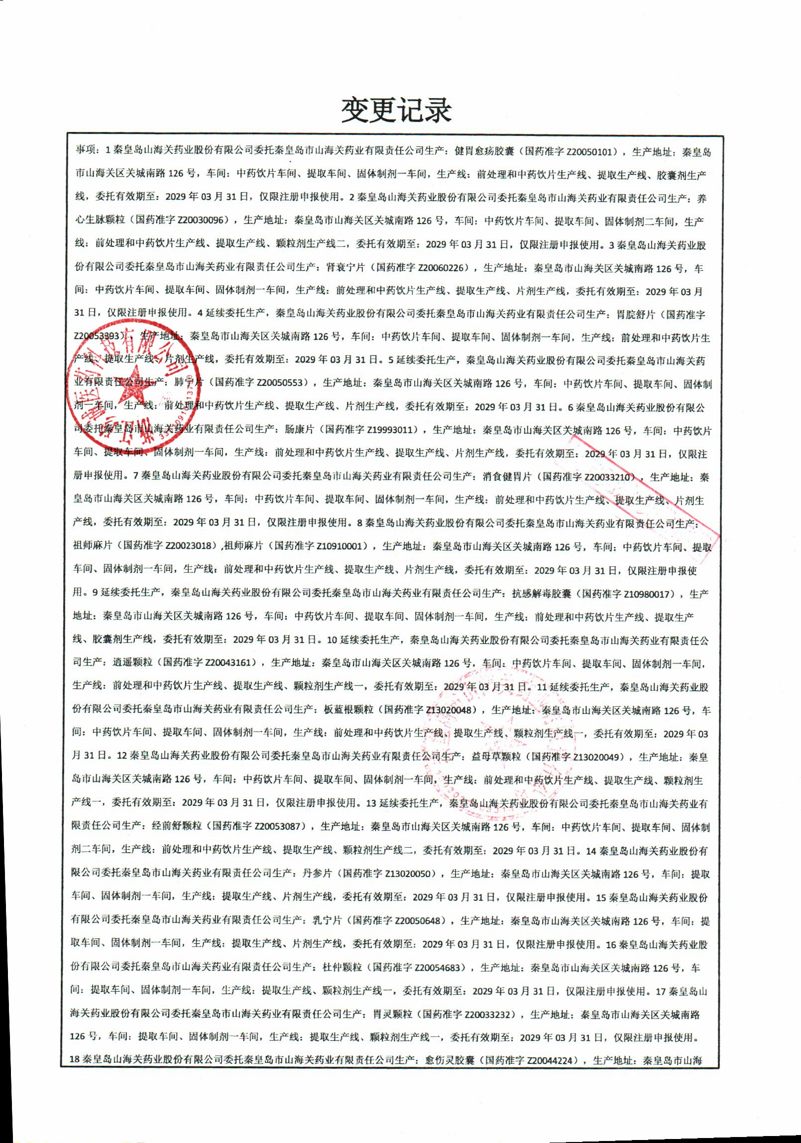 | 5 | Z99012242 | 秦皇岛市山海关药业有限责任公司 | 变更记录 (1).jpg | Dec 9, 2025 1:54:57 PM | 查看下载 | |