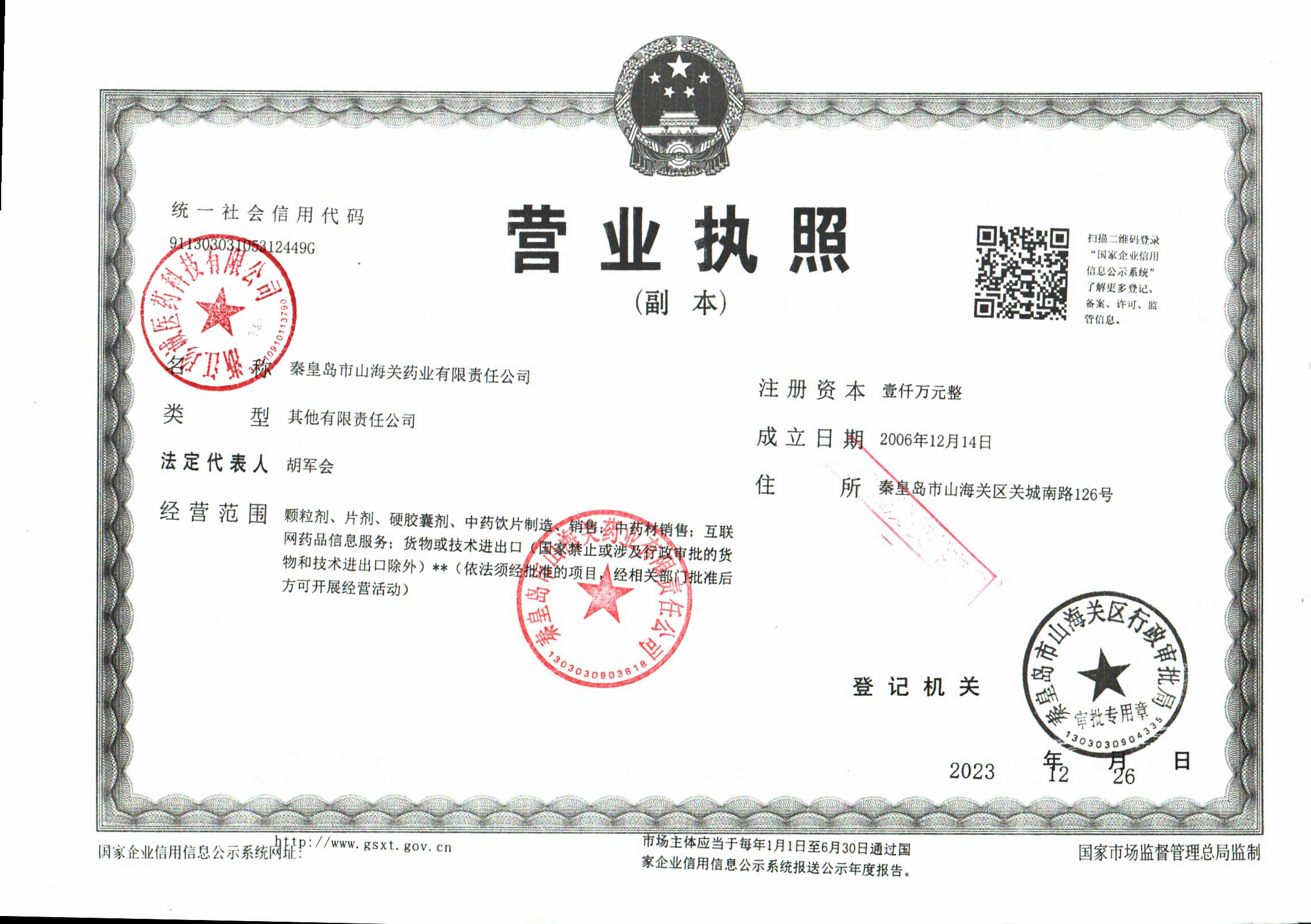 | 4 | Z99012242 | 秦皇岛市山海关药业有限责任公司 | 营业执照.jpg | Dec 9, 2025 1:54:57 PM | 查看下载 | |