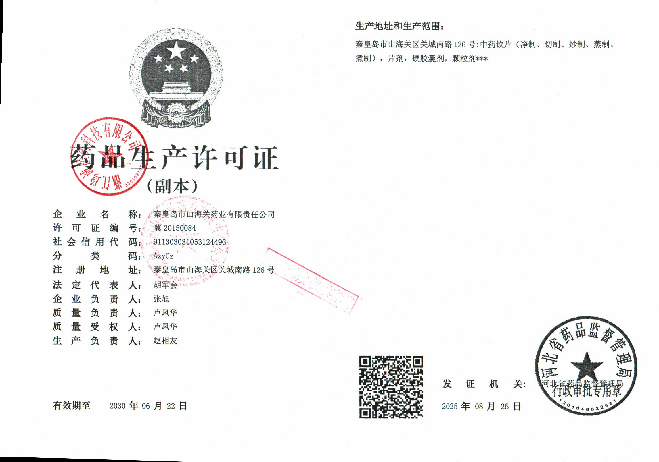 | 6 | Z99012242 | 秦皇岛市山海关药业有限责任公司 | 许可证.jpg | Dec 9, 2025 1:54:57 PM | 查看下载 |