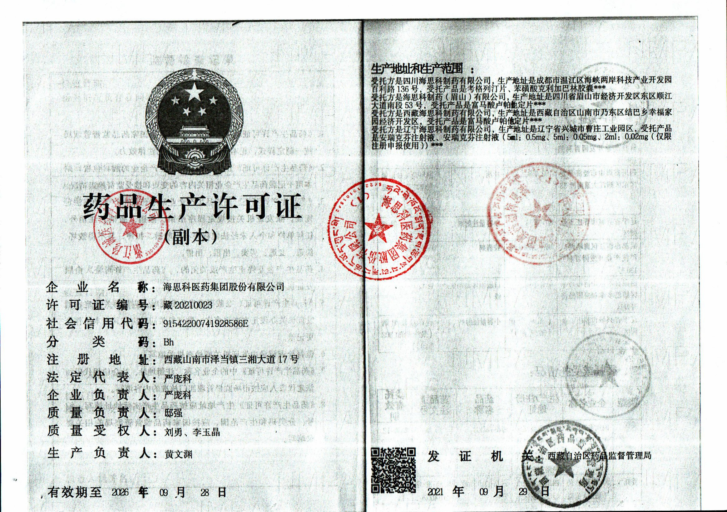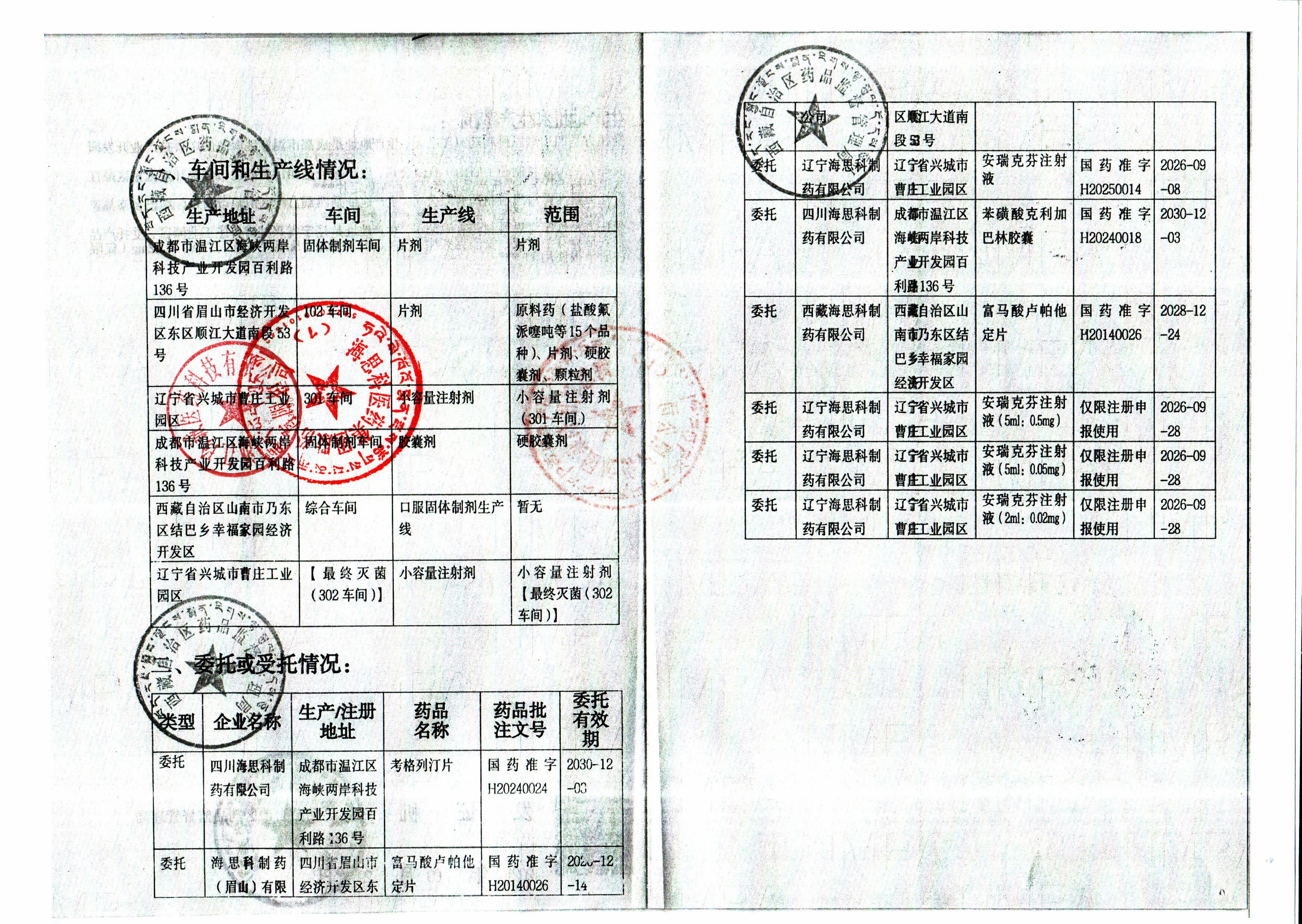 | 4 | Z99012700 | 海思科医药集团股份有限公司 | 许可证副本.jpg | Mar 3, 2026 9:16:30 AM | 查看下载 | |