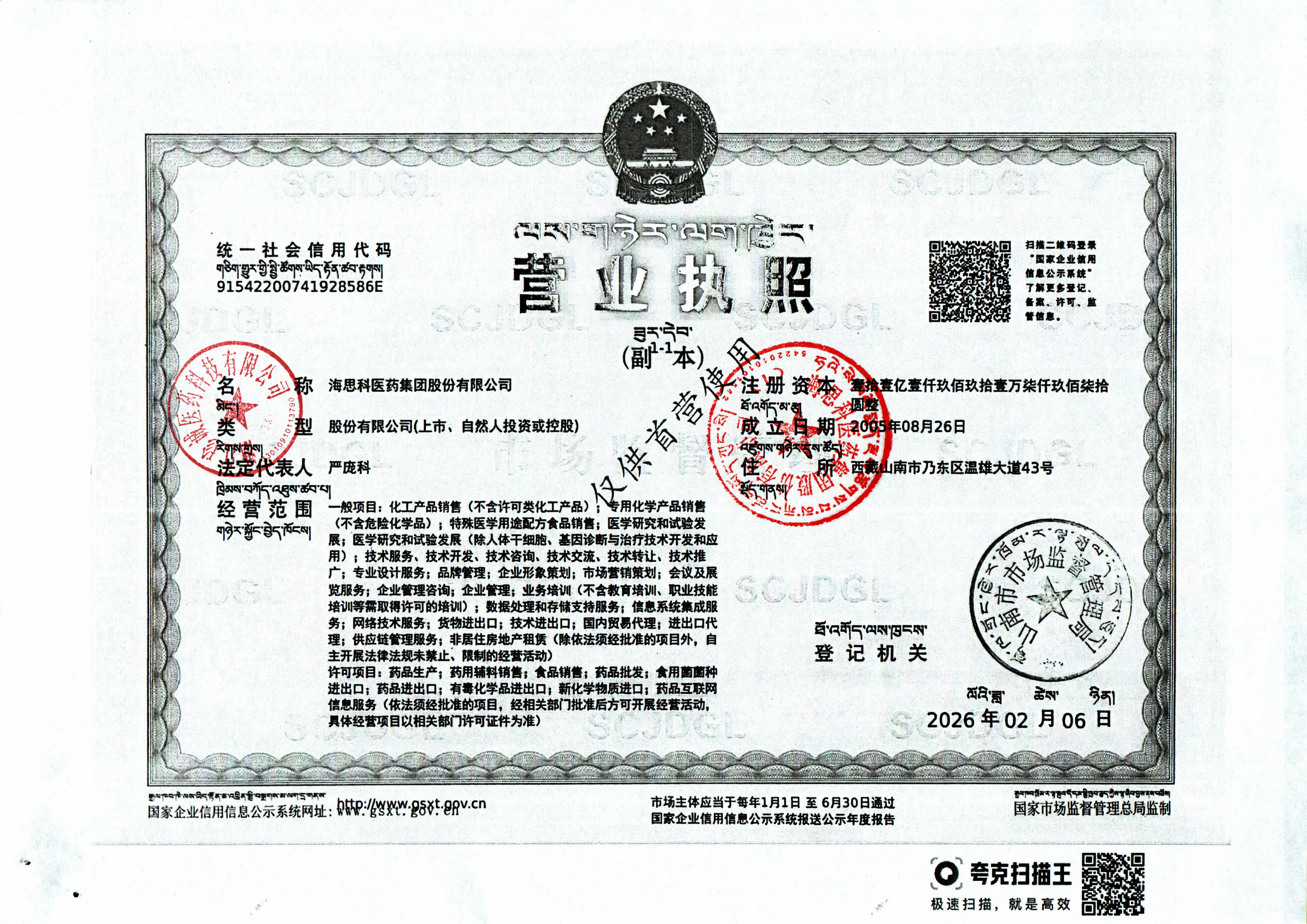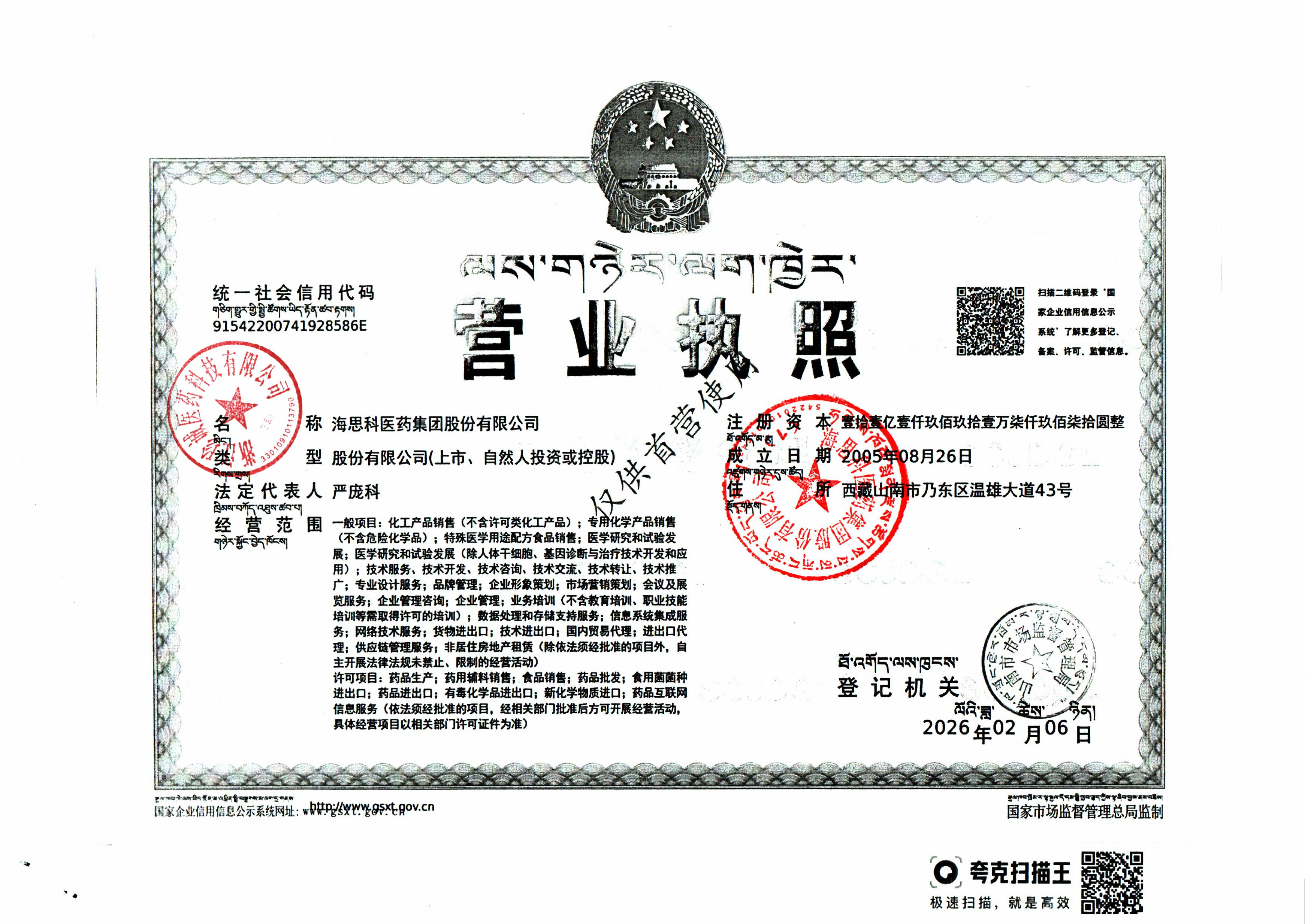 | 2 | Z99012700 | 海思科医药集团股份有限公司 | 营业执照 (1).jpg | Mar 3, 2026 9:16:30 AM | 查看下载 | |