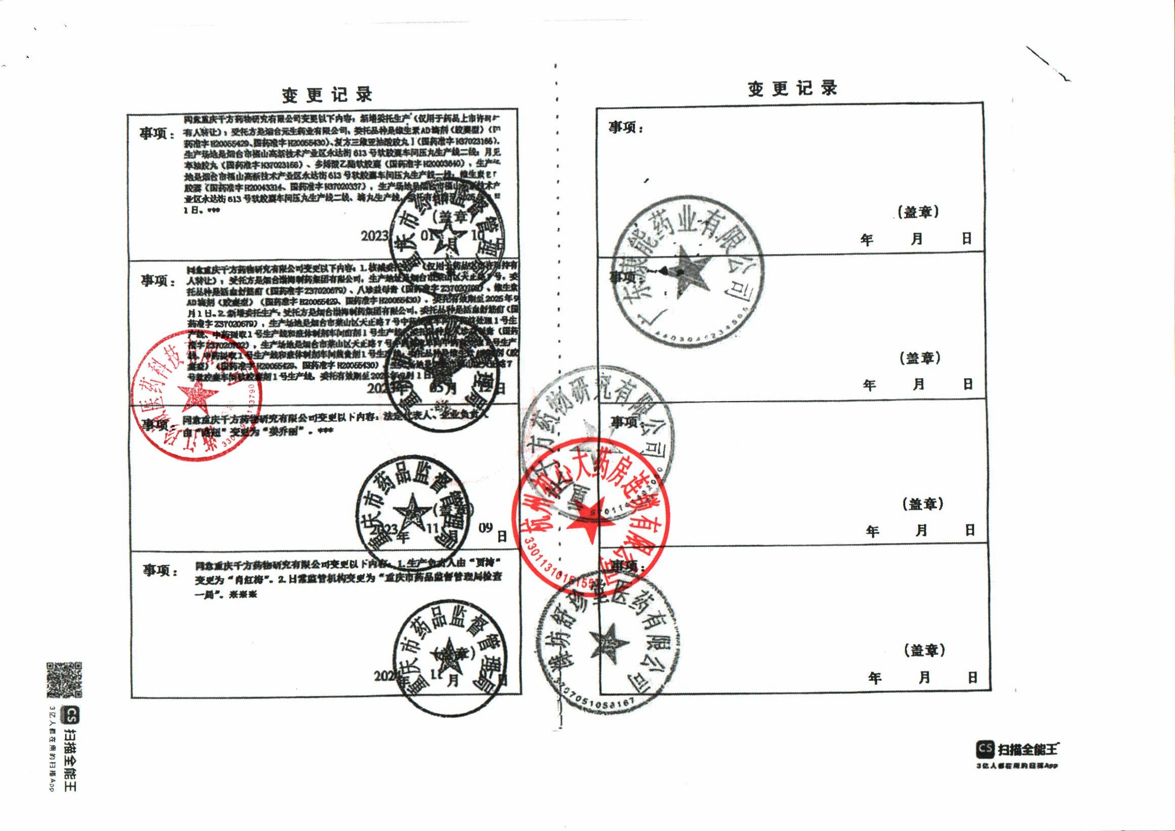 | 2 | Z99013040 | 重庆千方药物研究有限公司 | 变更记录.jpg | Nov 28, 2025 2:13:20 PM | 查看下载 | |
