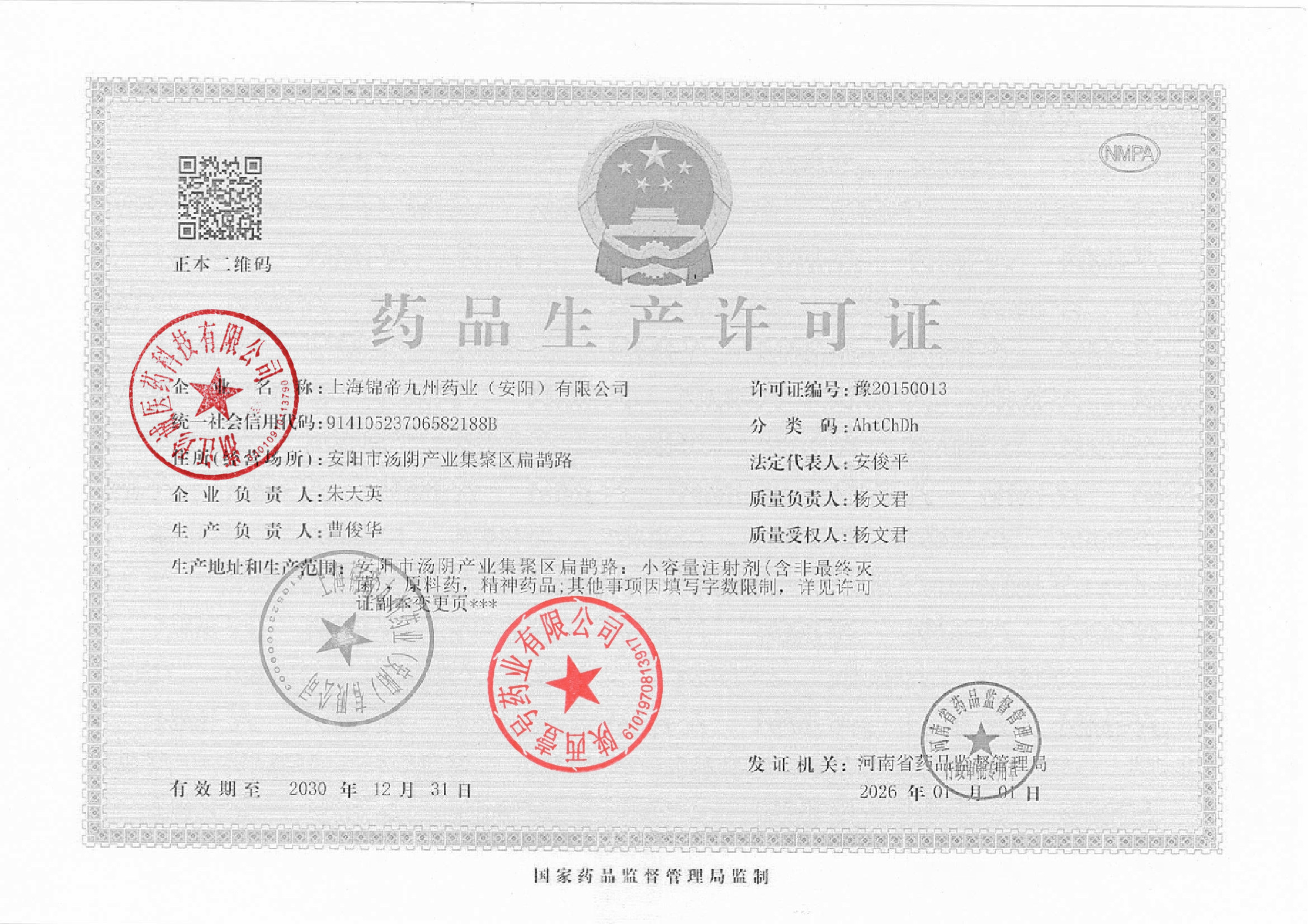 1 Z99013580 上海锦帝九州药业(安阳)有限公司 许可证.jpg Apr 3, 2026 2:38:00 PM 查看下载