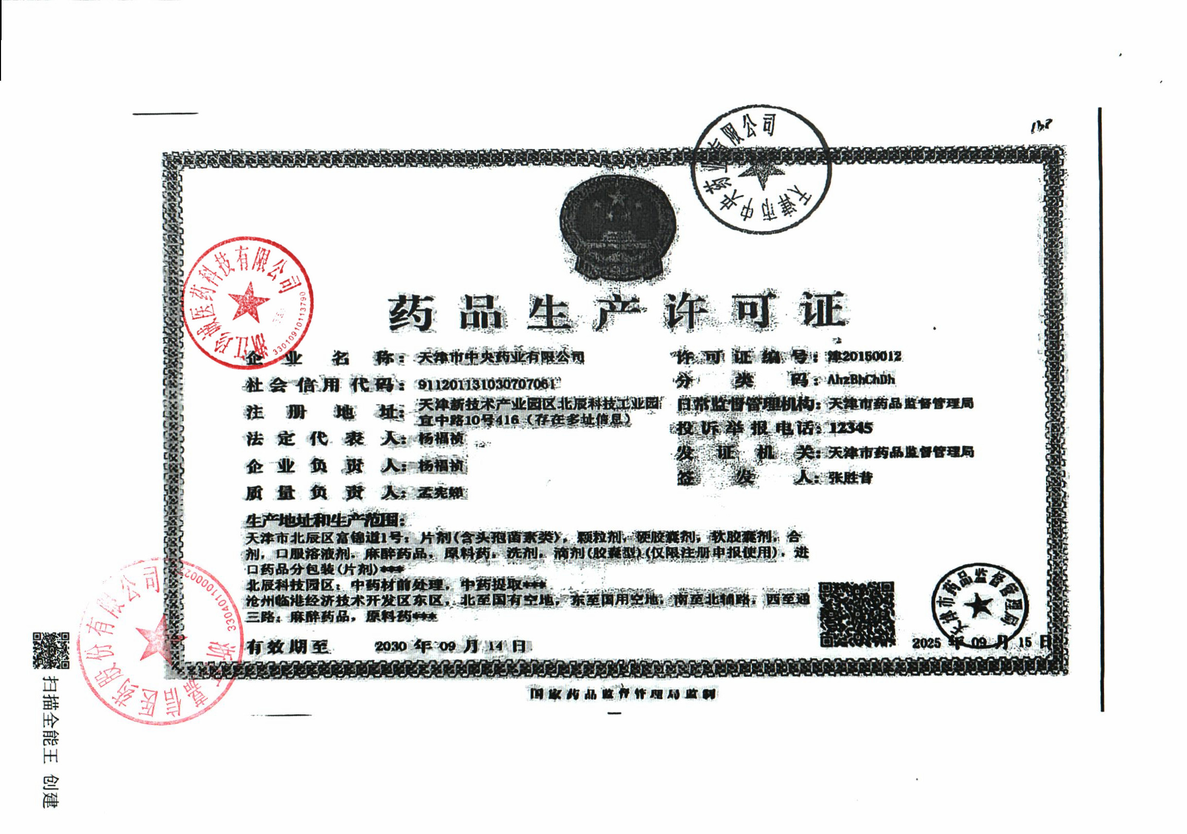 天津市中央药业有限公司 |