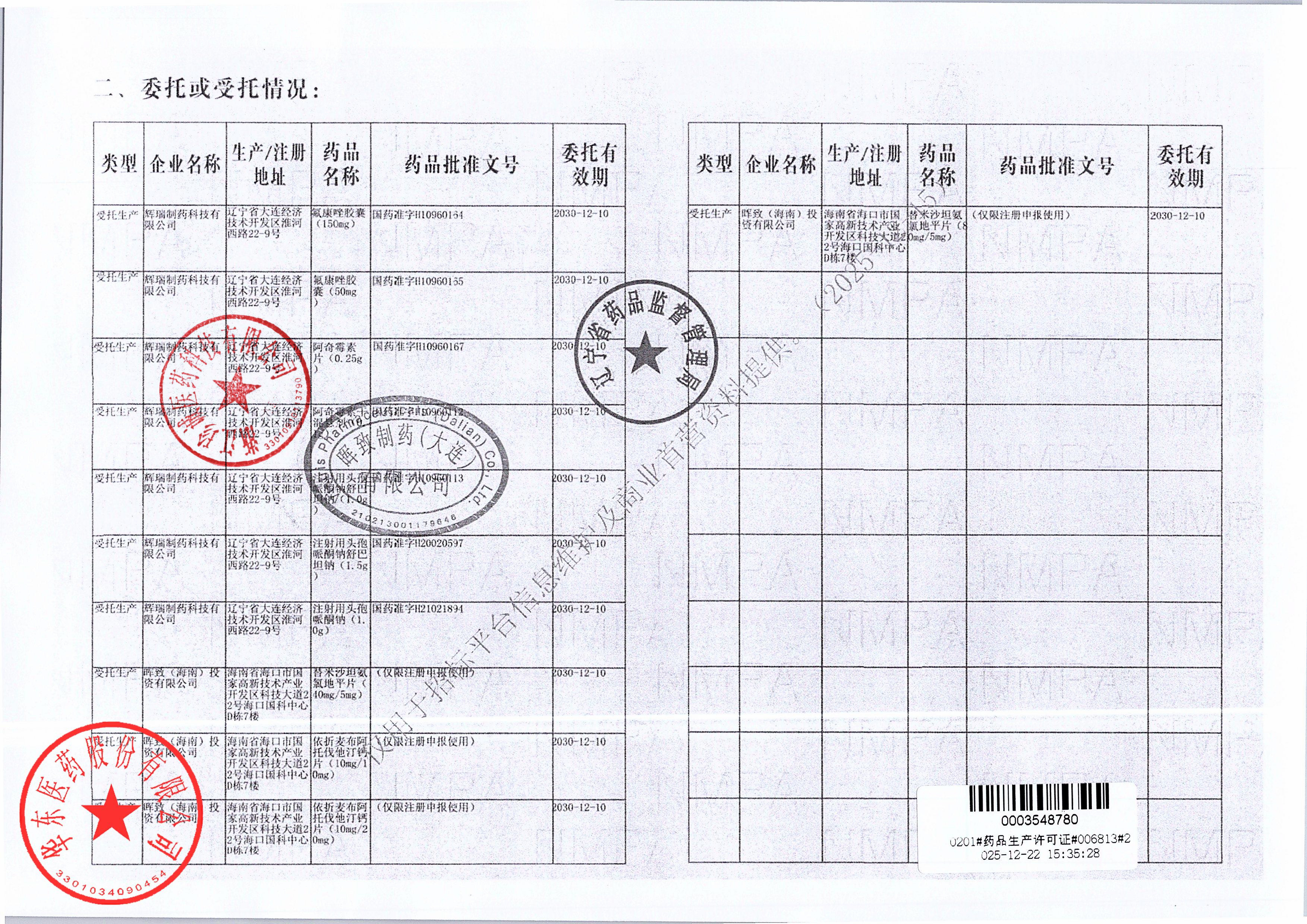 | 3 | Z99014000 | 晖致制药(大连)有限公司 | 委托生产.jpg | Feb 27, 2026 2:05:26 PM | 查看下载 | |