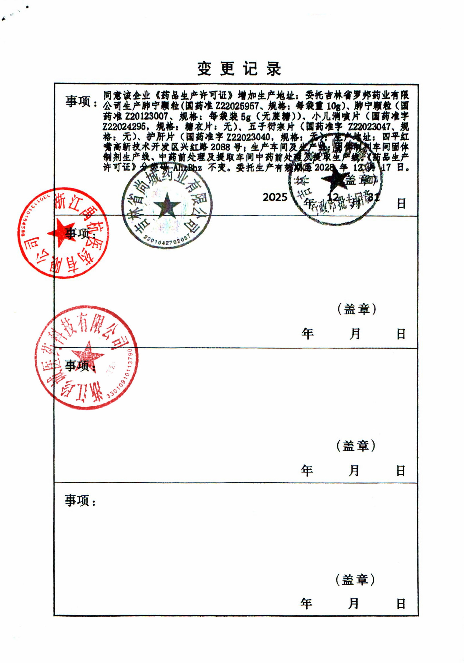 | 1 | Z99014220 | 吉林省尚城药业有限公司 | 变更记录 (2).jpg | Jan 16, 2026 10:17:26 AM | 查看下载 | |