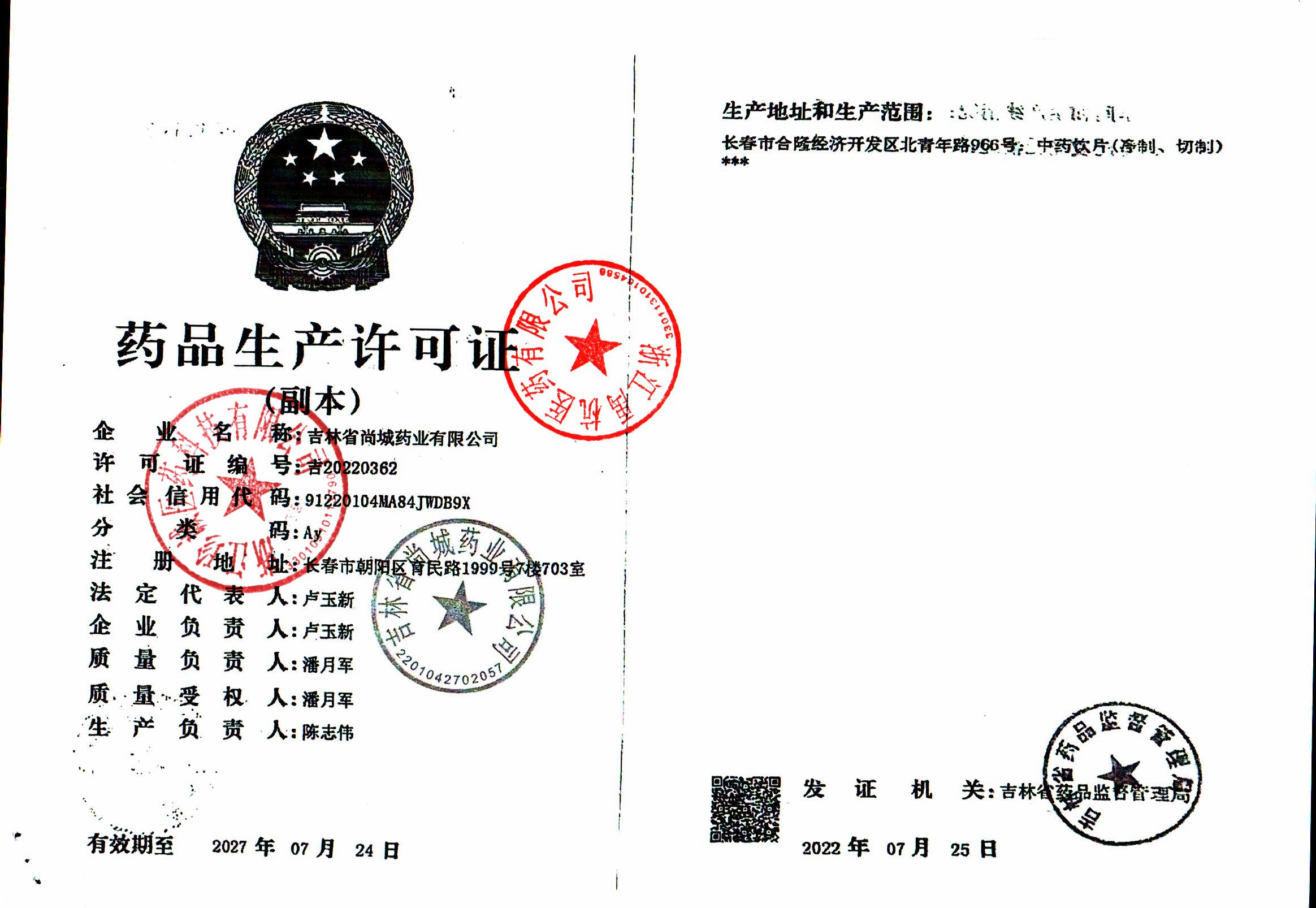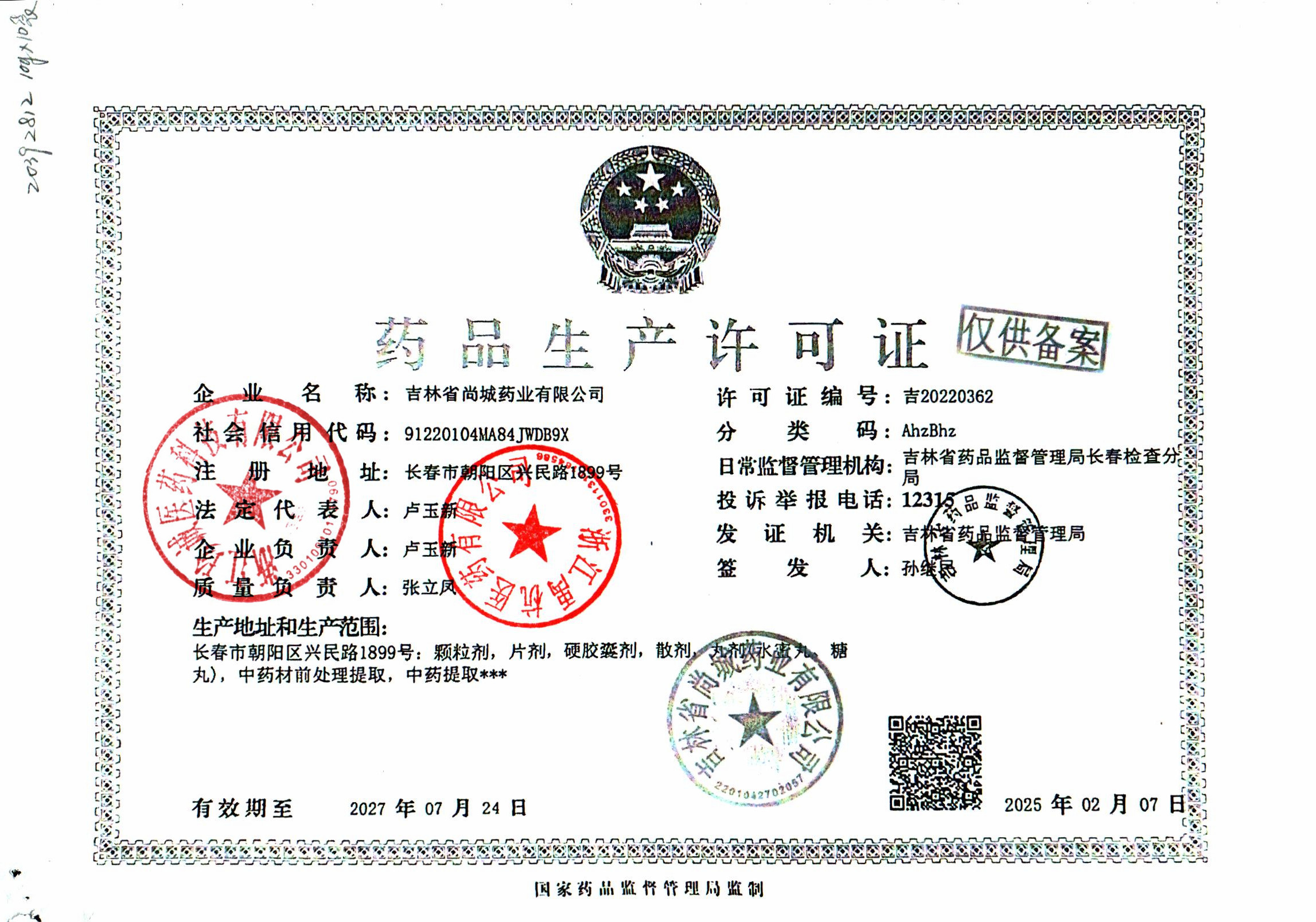 | 3 | Z99014220 | 吉林省尚城药业有限公司 | 许可证 (1).jpg | Jan 16, 2026 10:17:26 AM | 查看下载 | |
