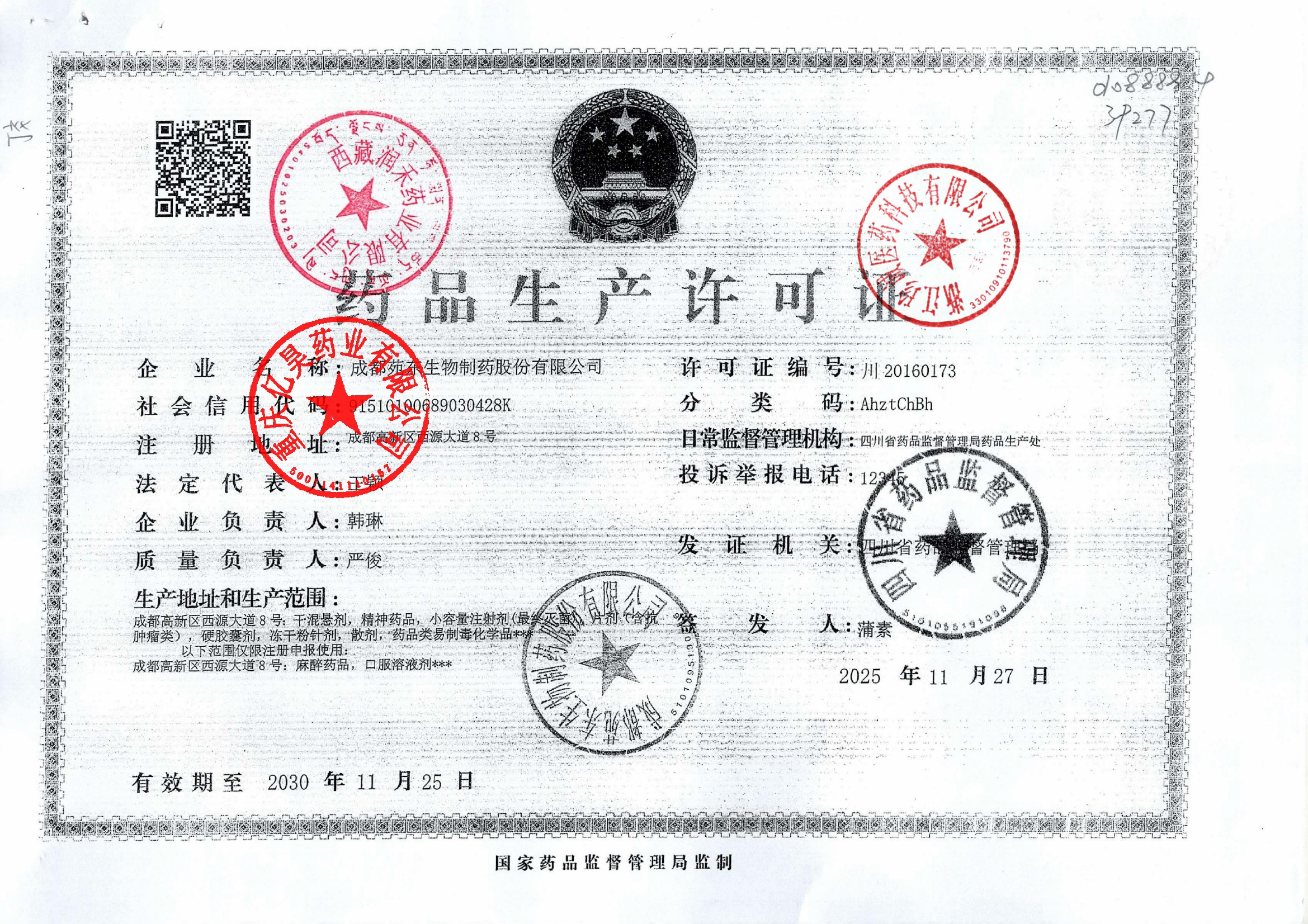1 Z99014261 成都苑东生物制药股份有限公司 许可证.jpg Feb 4, 2026 11:23:50 AM 查看下载