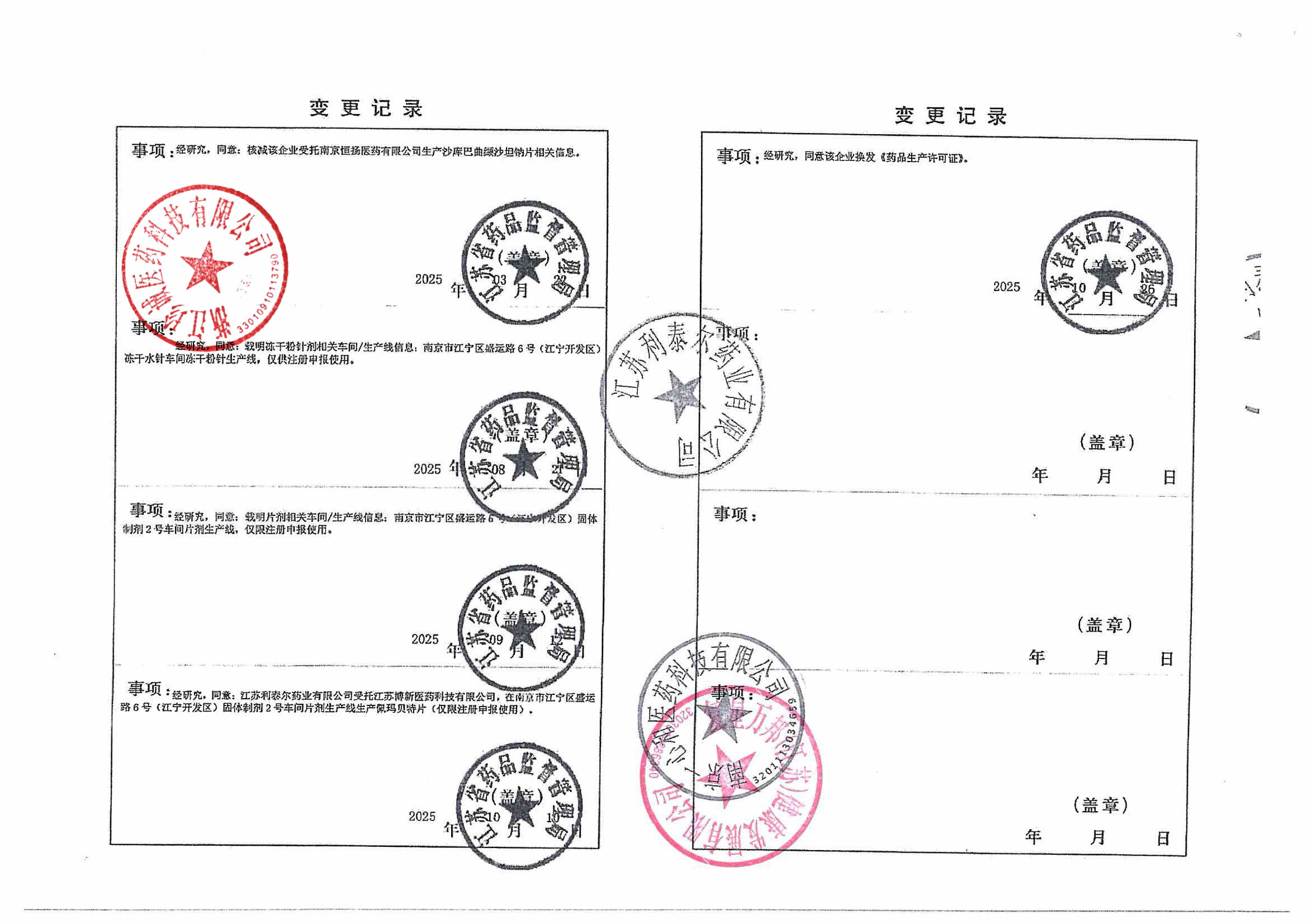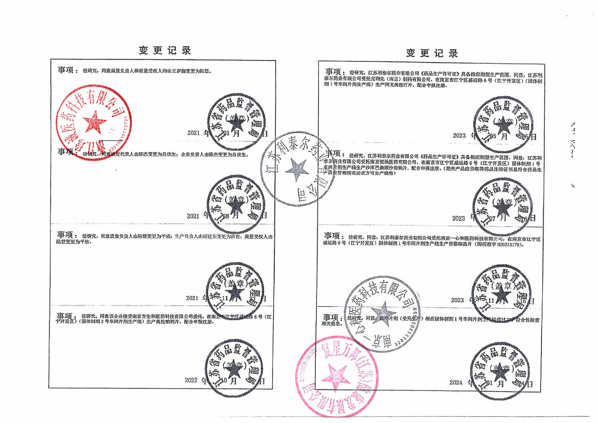 | 7 | Z99014280 | 江苏利泰尔药业有限公司 | 变更记录 (2).jpg | Jan 29, 2026 3:28:09 PM | 查看下载 | |