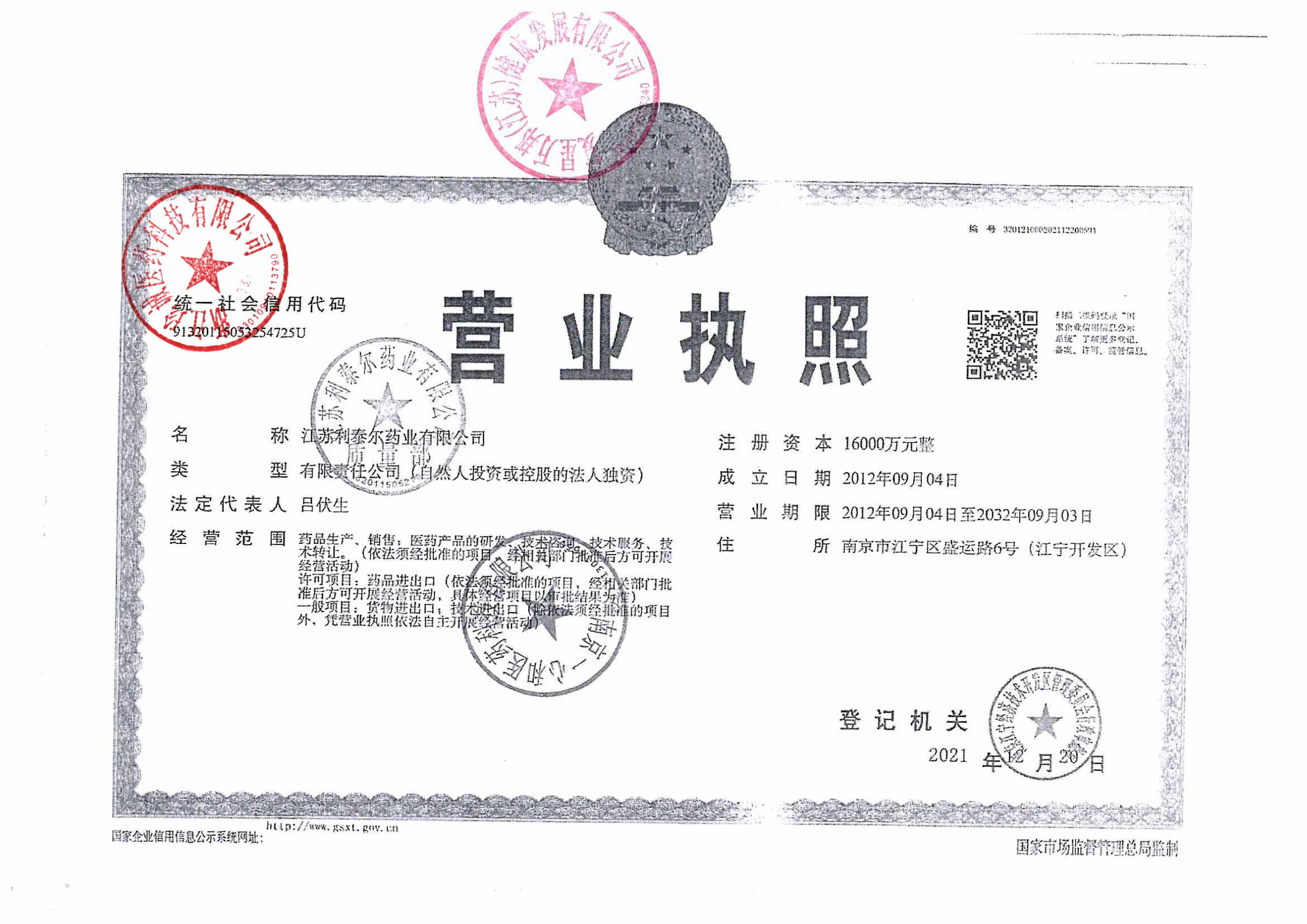 | 5 | Z99014280 | 江苏利泰尔药业有限公司 | 营业执照.jpg | Jan 29, 2026 3:28:09 PM | 查看下载 | |