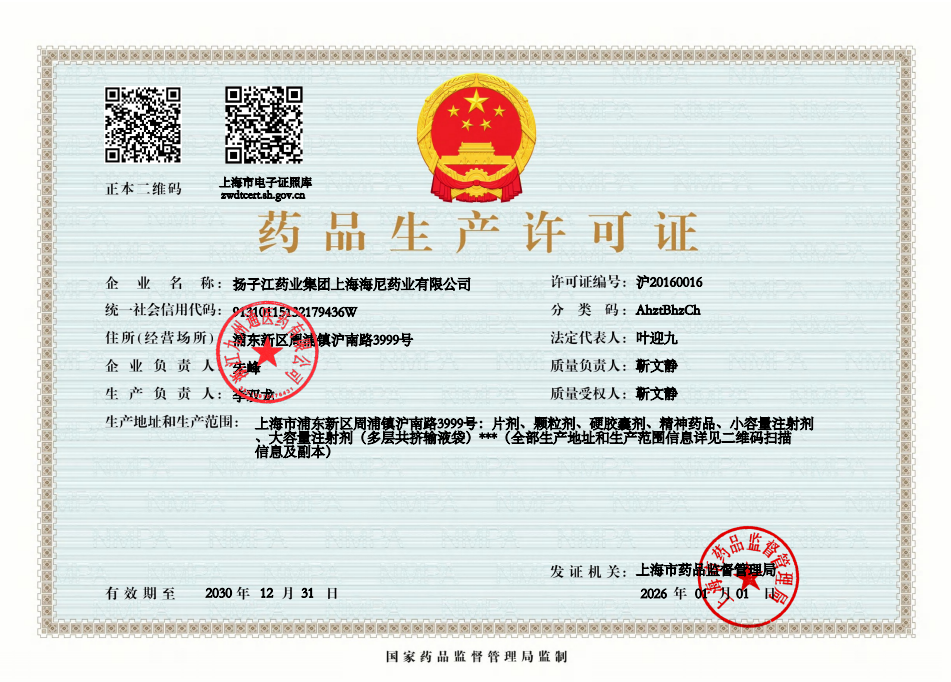 1 Z99014403 扬子江药业集团上海海尼药业有限公司 许可证 (1).png Jan 15, 2026 2:29:42 PM 查看下载