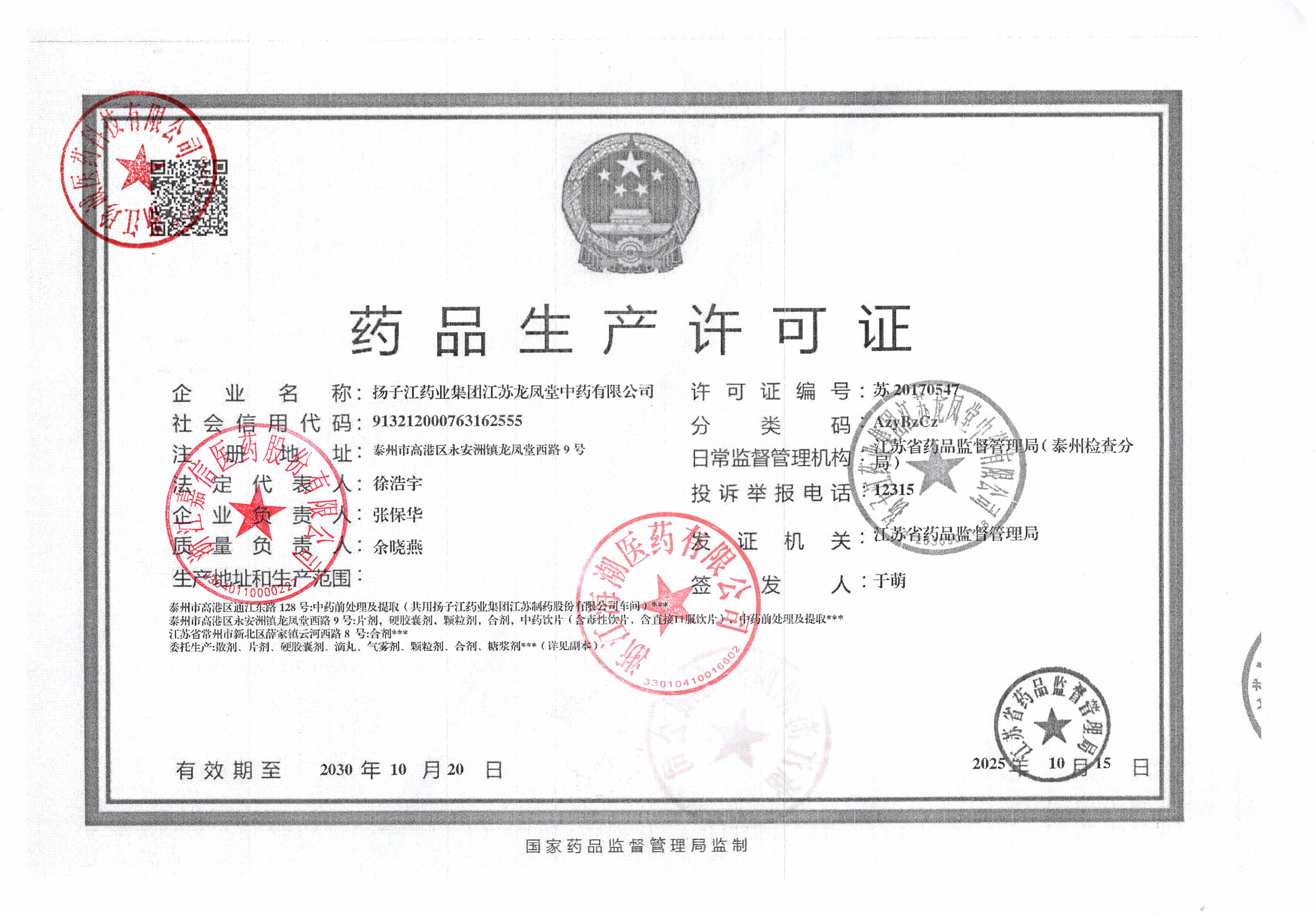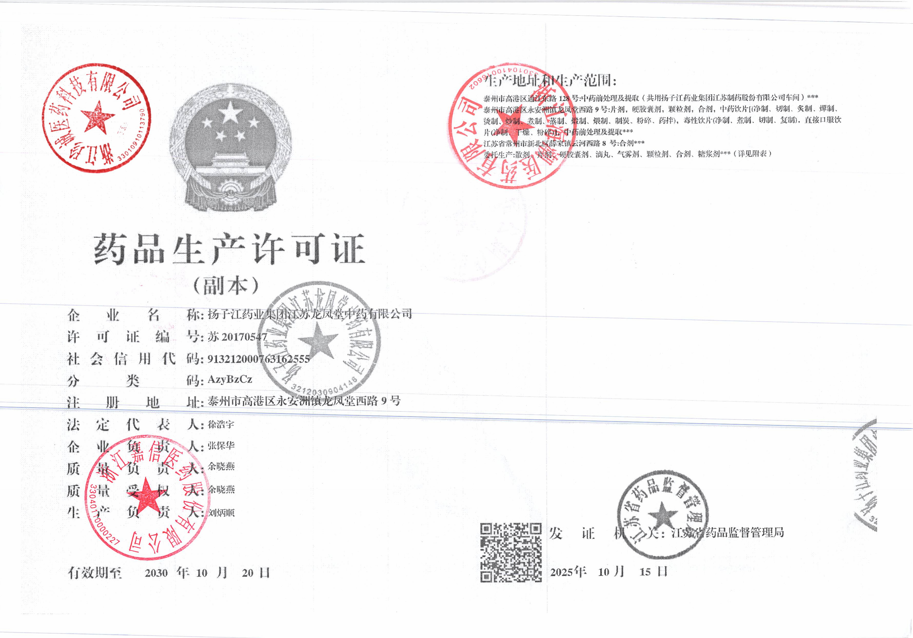 扬子江药业集团江苏龙凤堂中药有限公司 |