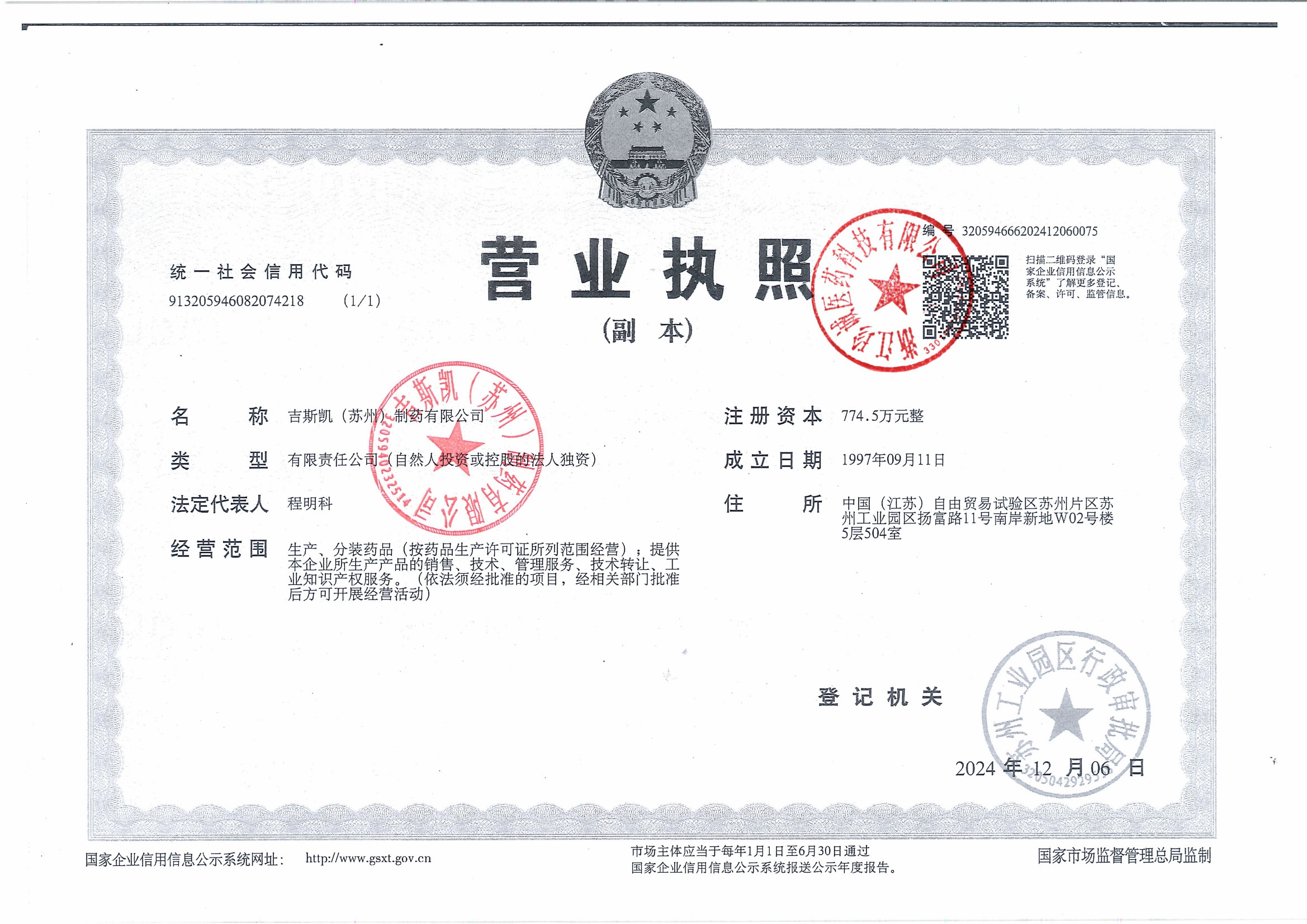 | 1 | Z99014642 | 吉斯凯(苏州)制药有限公司 | 营业执照.jpg | Mar 19, 2026 4:35:22 PM | 查看下载 | |