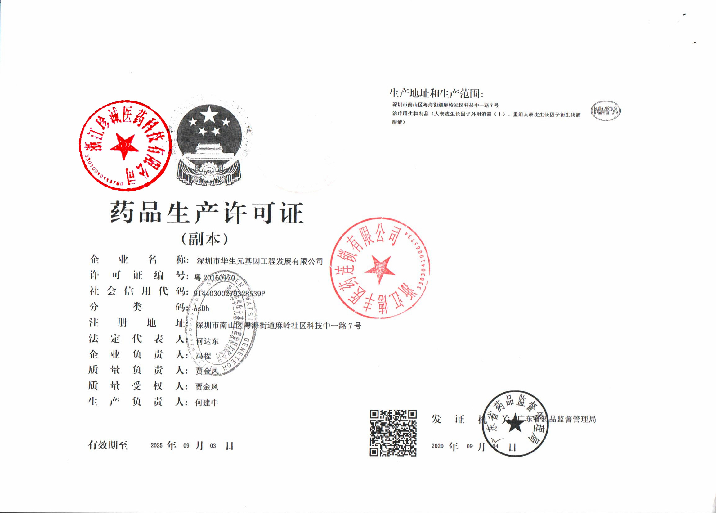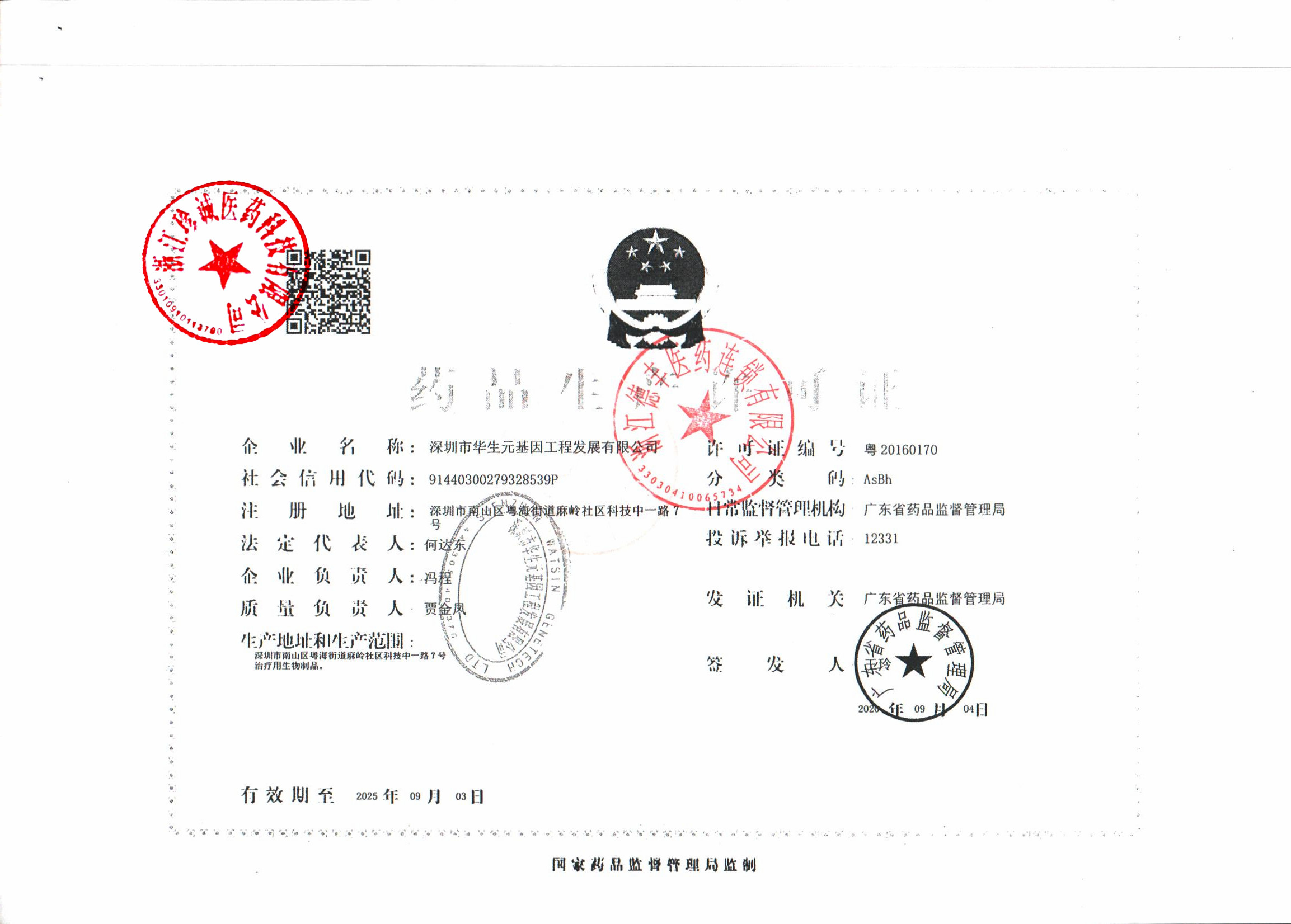 | 5 | Z99014700 | 深圳市华生元基因工程发展有限公司 | 药品生产许可证 (2).jpg | Aug 14, 2025 2:09:31 PM | 查看下载 | |