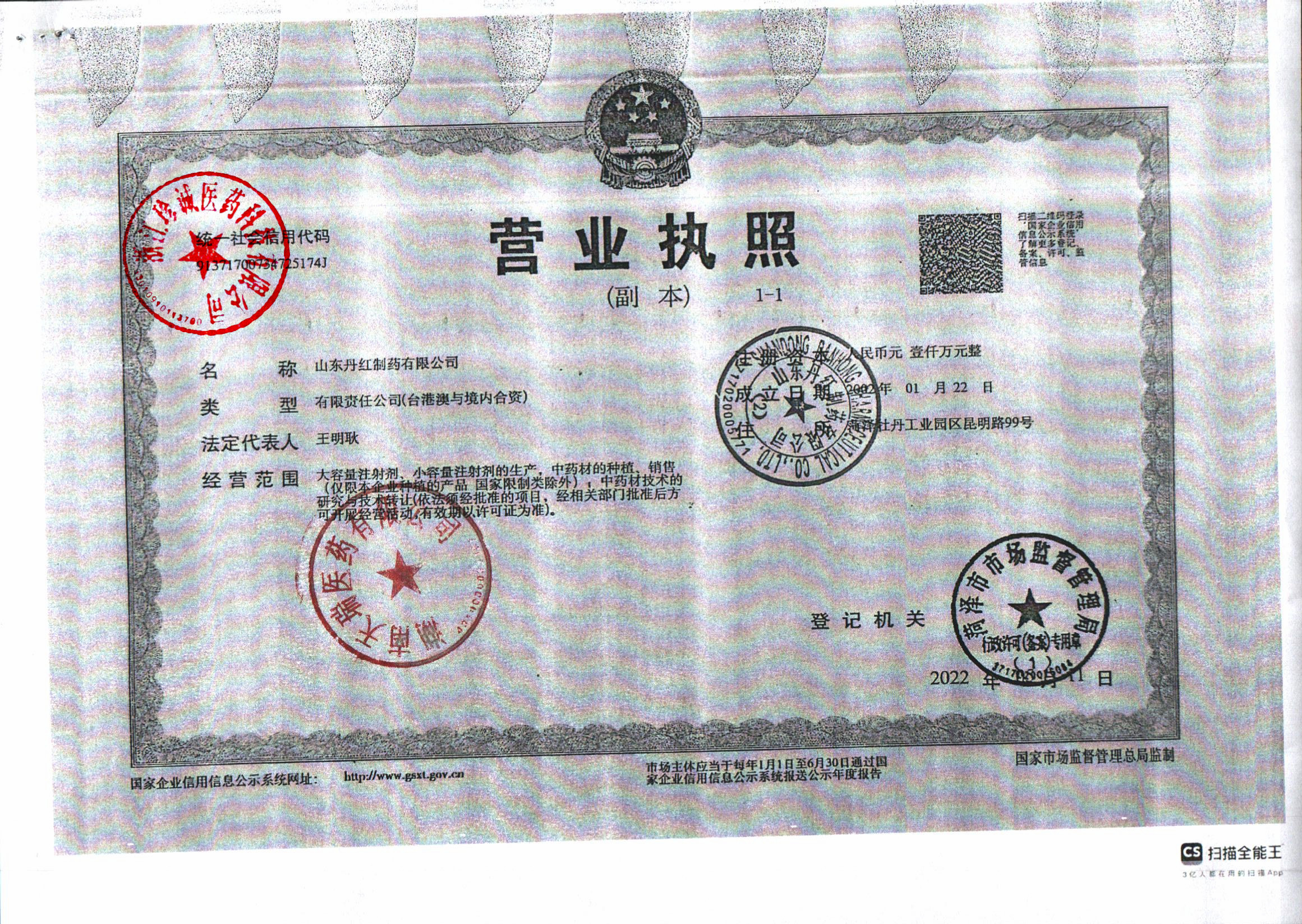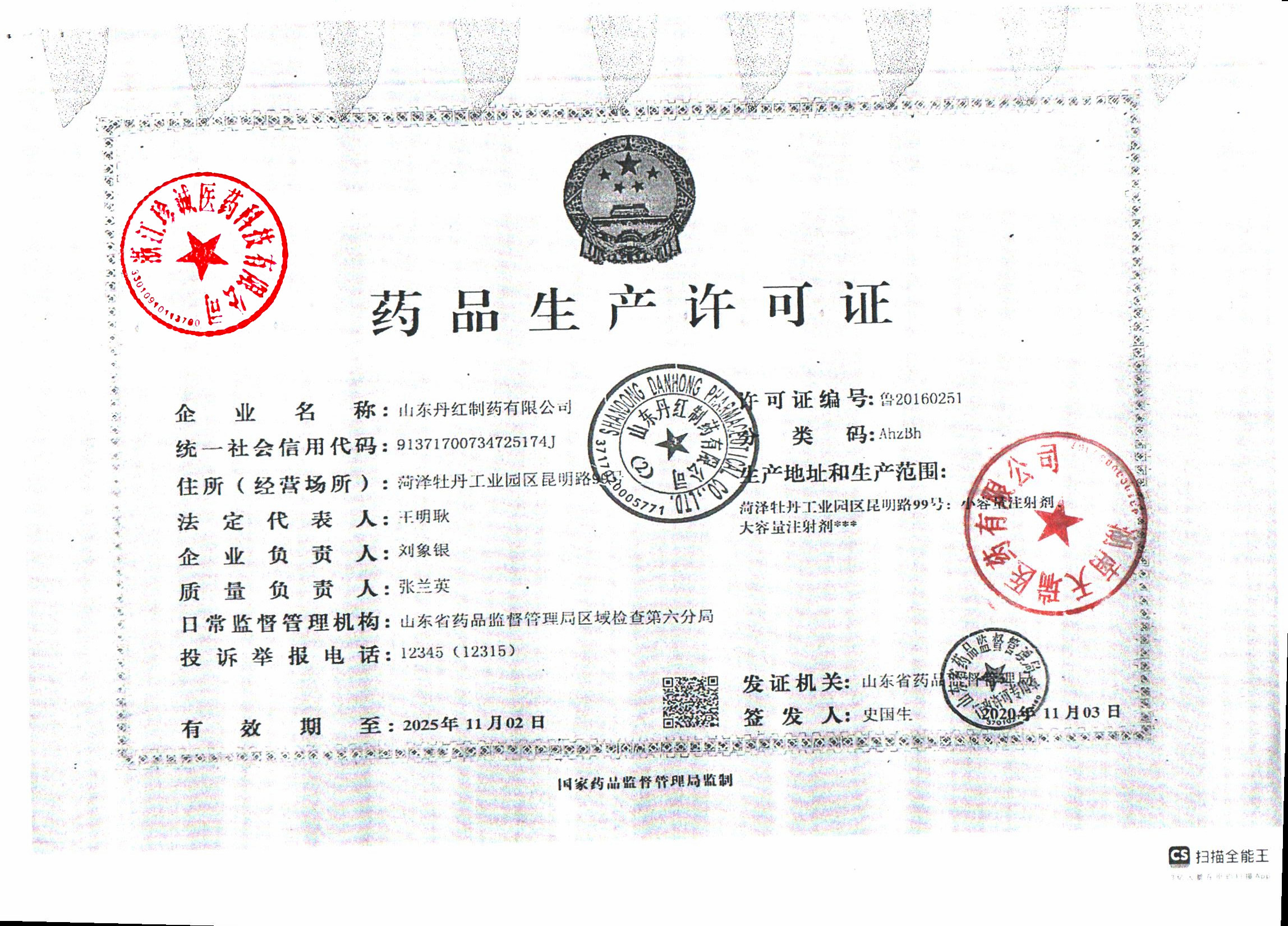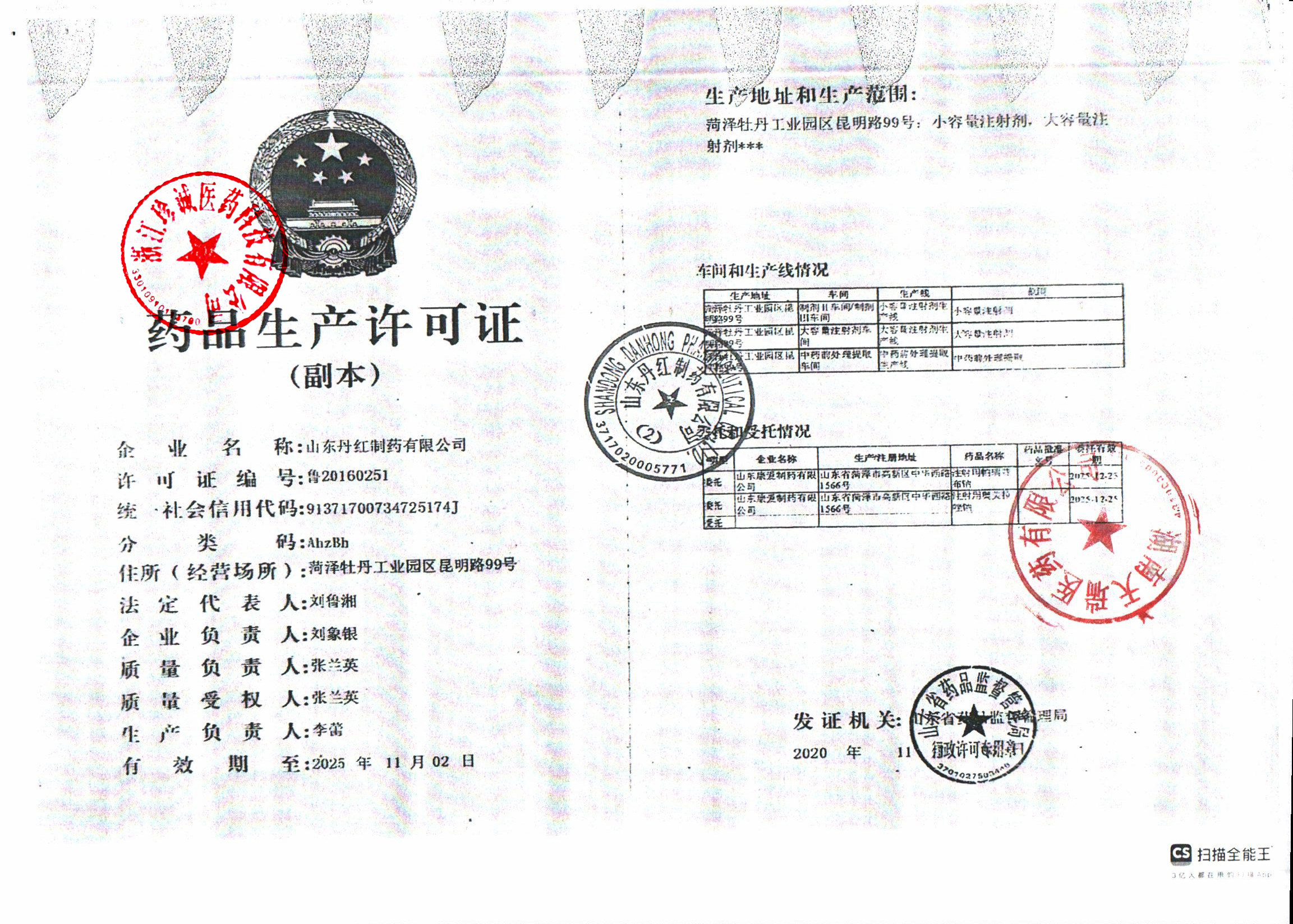 | 3 | Z99014702 | 山东丹红制药有限公司 | 药品生产许可证 (1).jpg | Aug 14, 2025 2:41:45 PM | 查看下载 | |