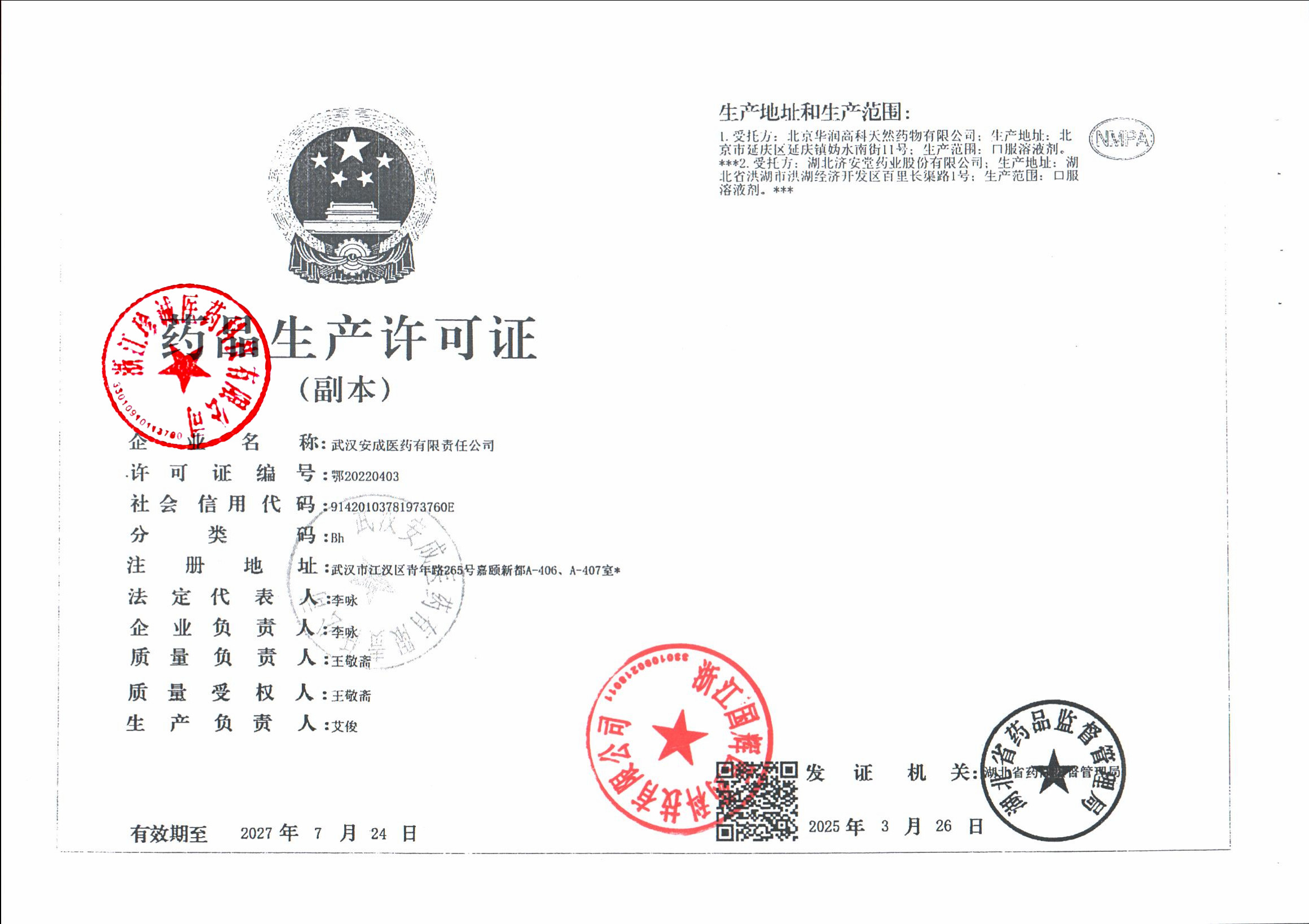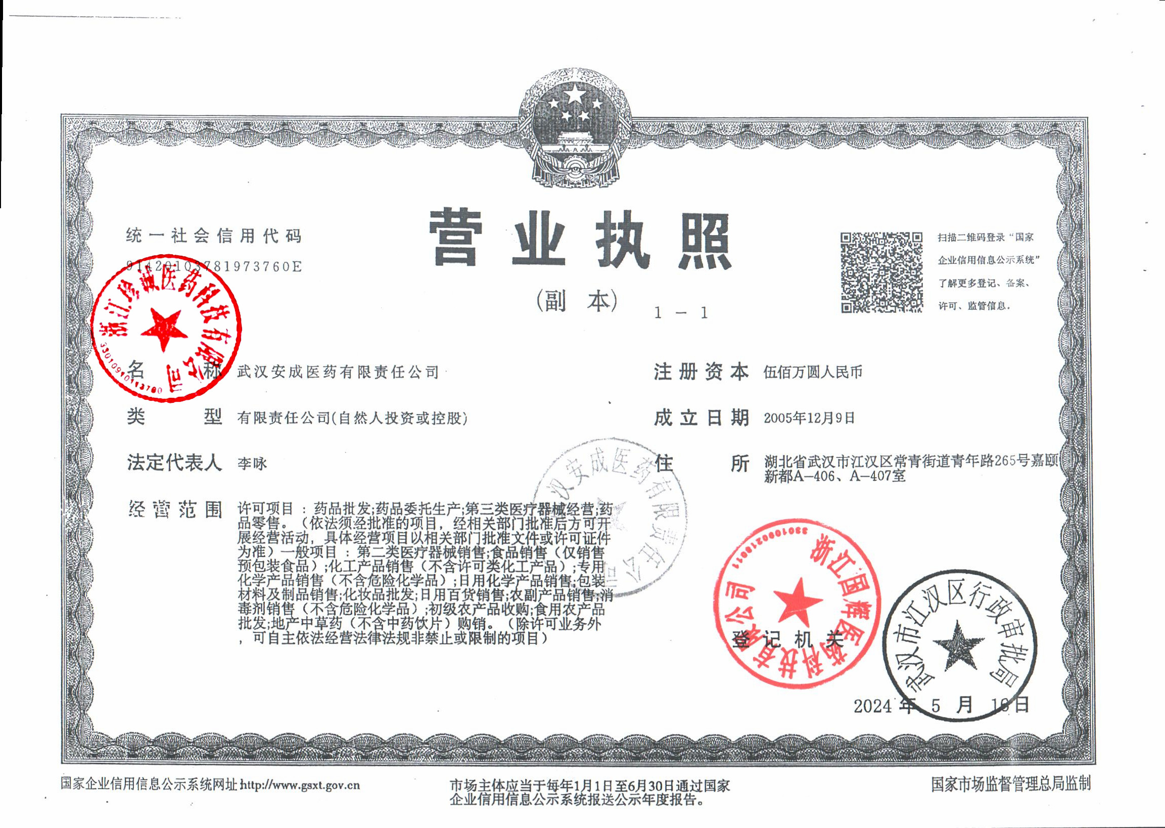 3 | Z99014721 | 武汉安成医药有限责任公司 | 药品生产许可证.jpg | Aug 19, 2025 10:57:32 AM | 查看下载 | |