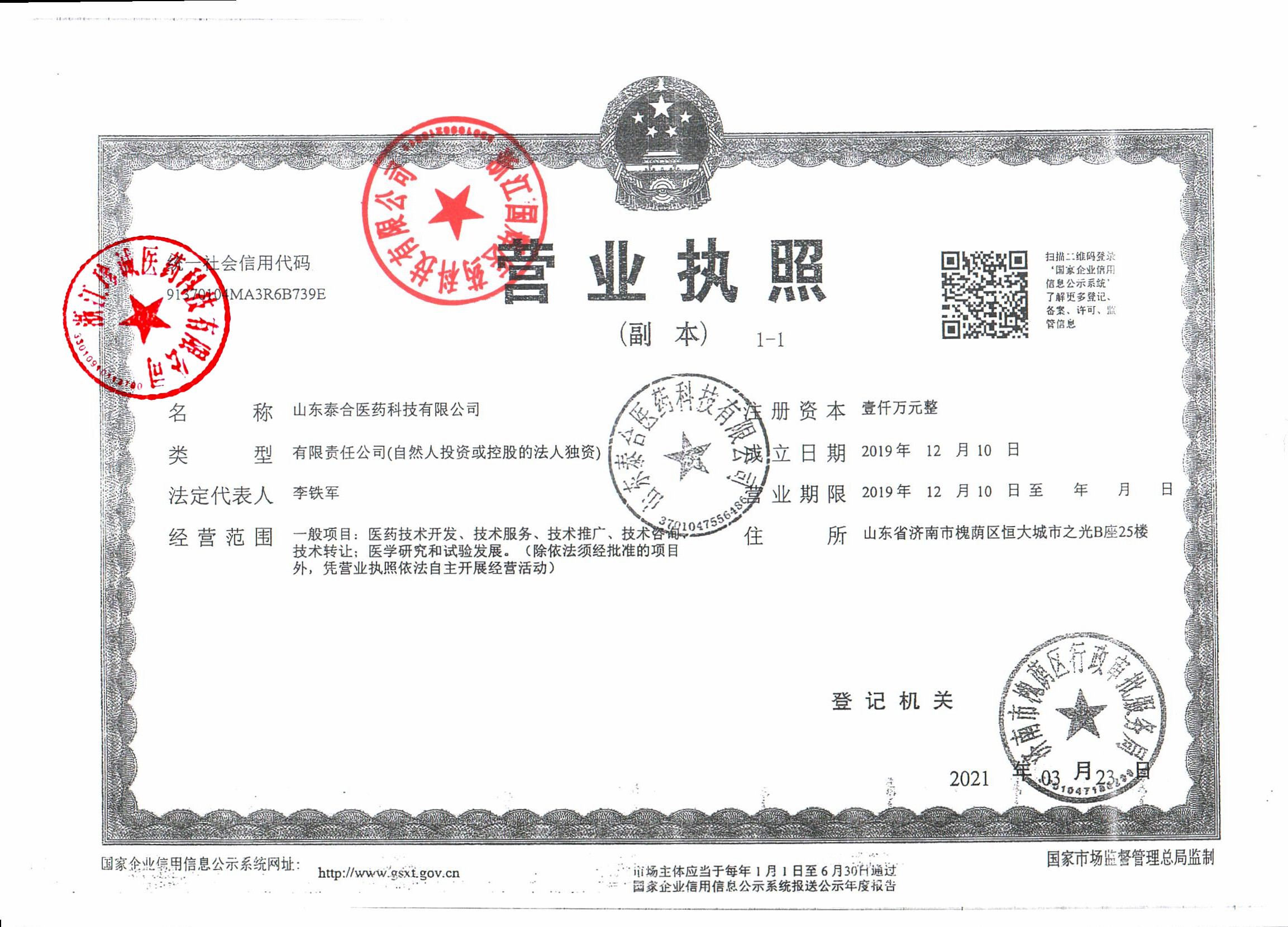 3 Z99014880 山东泰合医药科技有限公司 营业执照.jpg Sep 22, 2025 9:12:20 AM 查看下载
