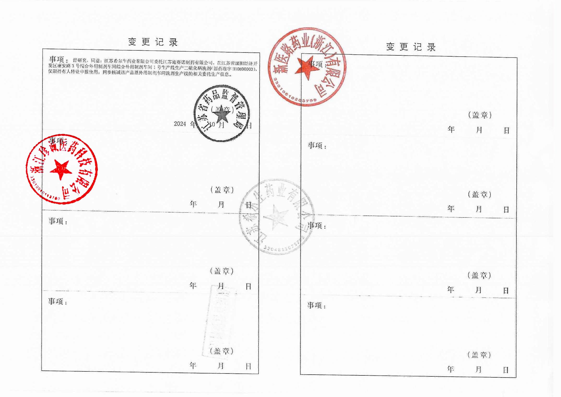 1 | Z99014884 | 江苏希尔生物药业有限公司 | 变更记录.jpg | Sep 22, 2025 1:11:39 PM | 查看下载 | |