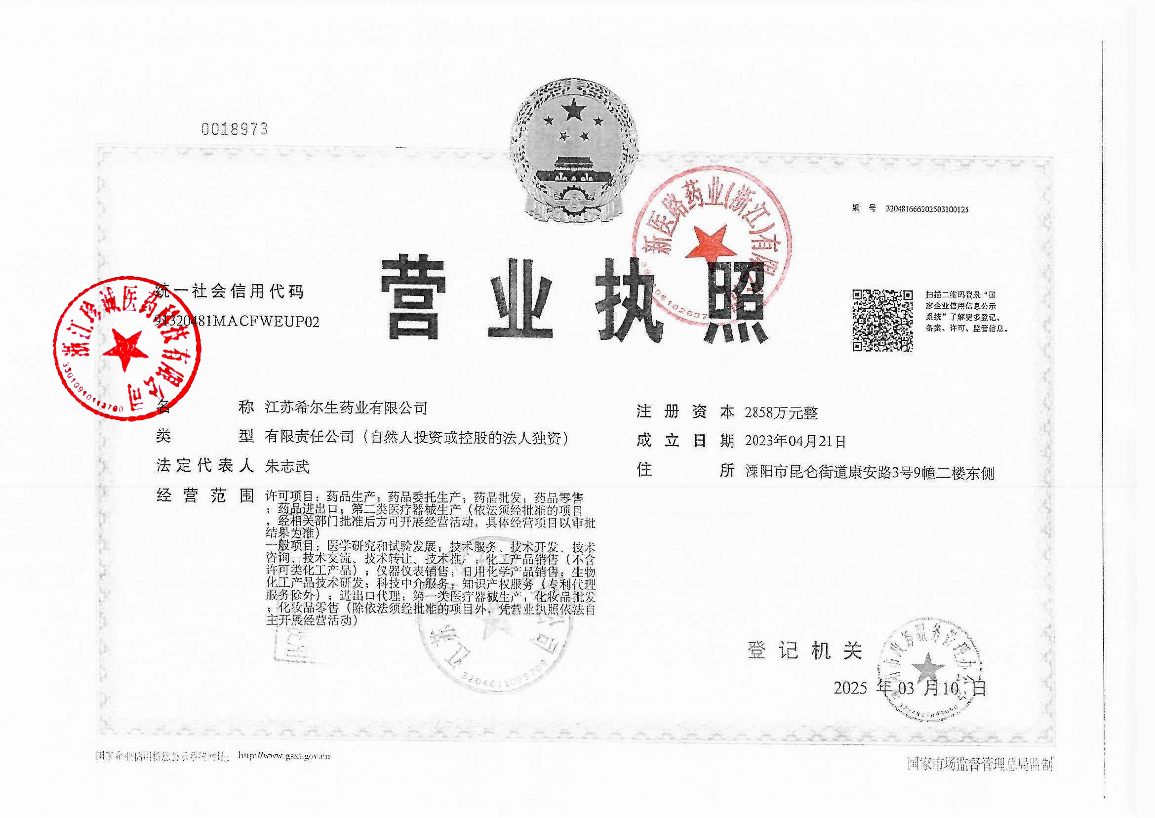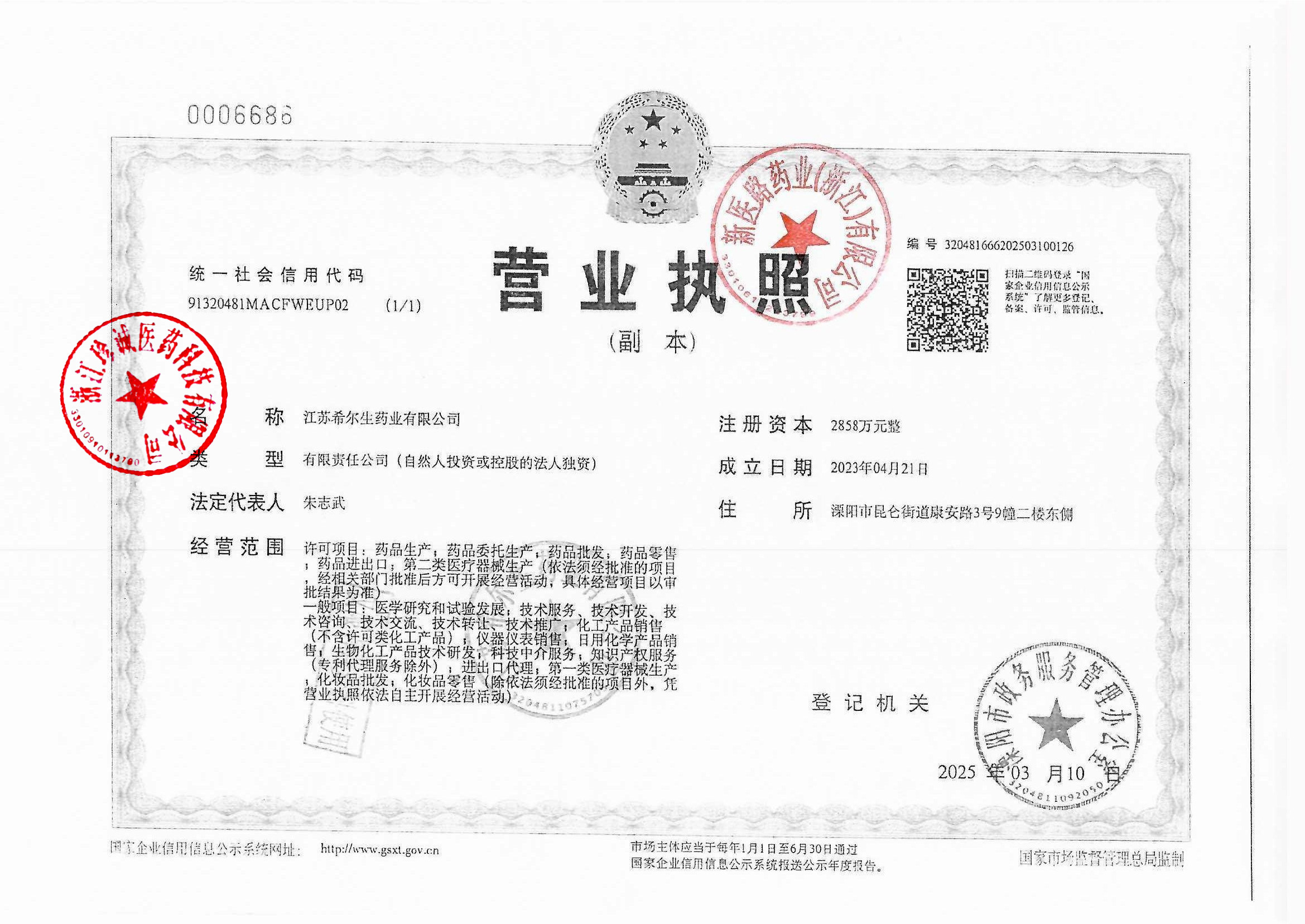 3 | Z99014884 | 江苏希尔生物药业有限公司 | 营业执照 (1).jpg | Sep 22, 2025 1:11:39 PM | 查看下载 | |