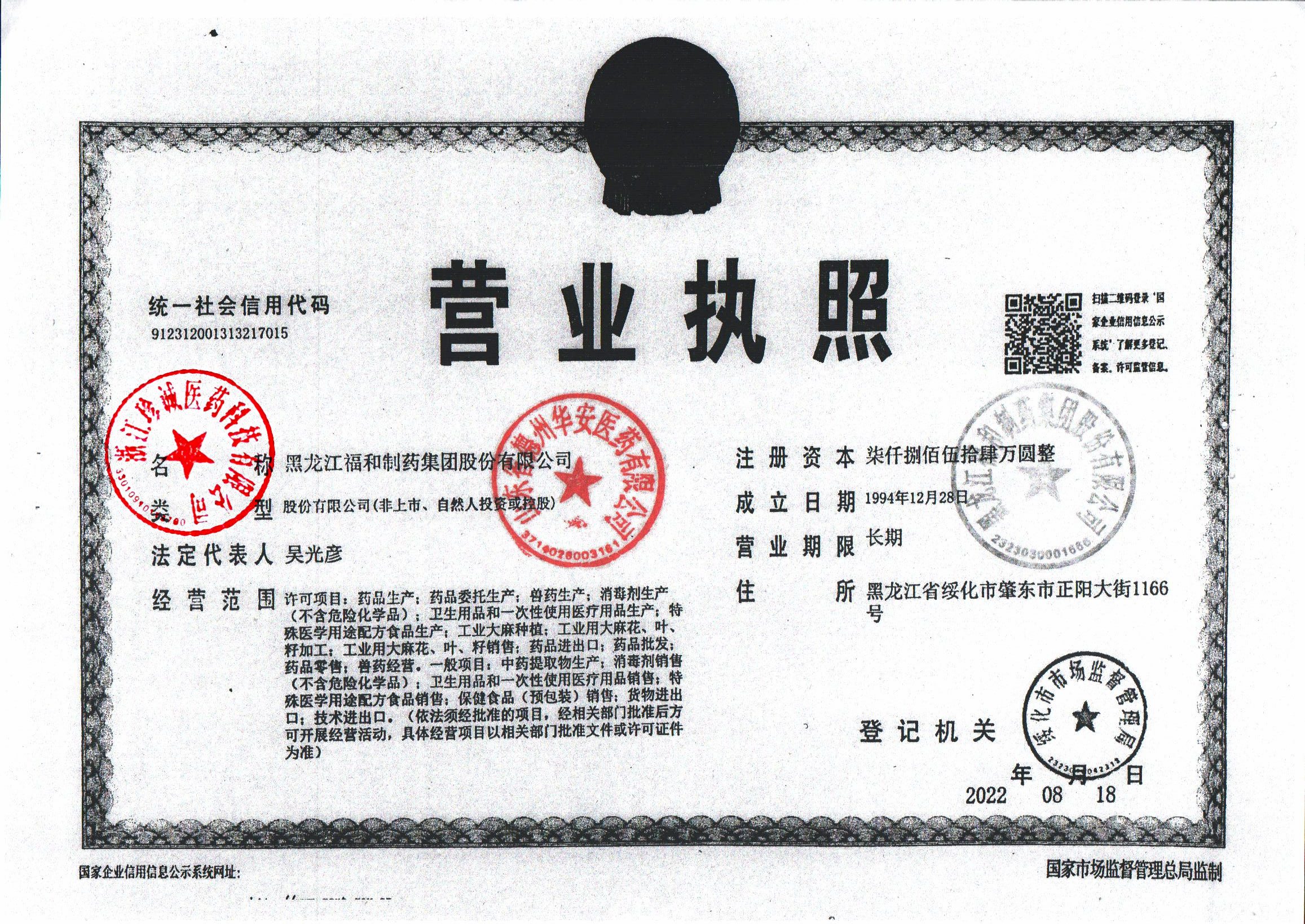 黑龙江福和制药集团股份有限公司
