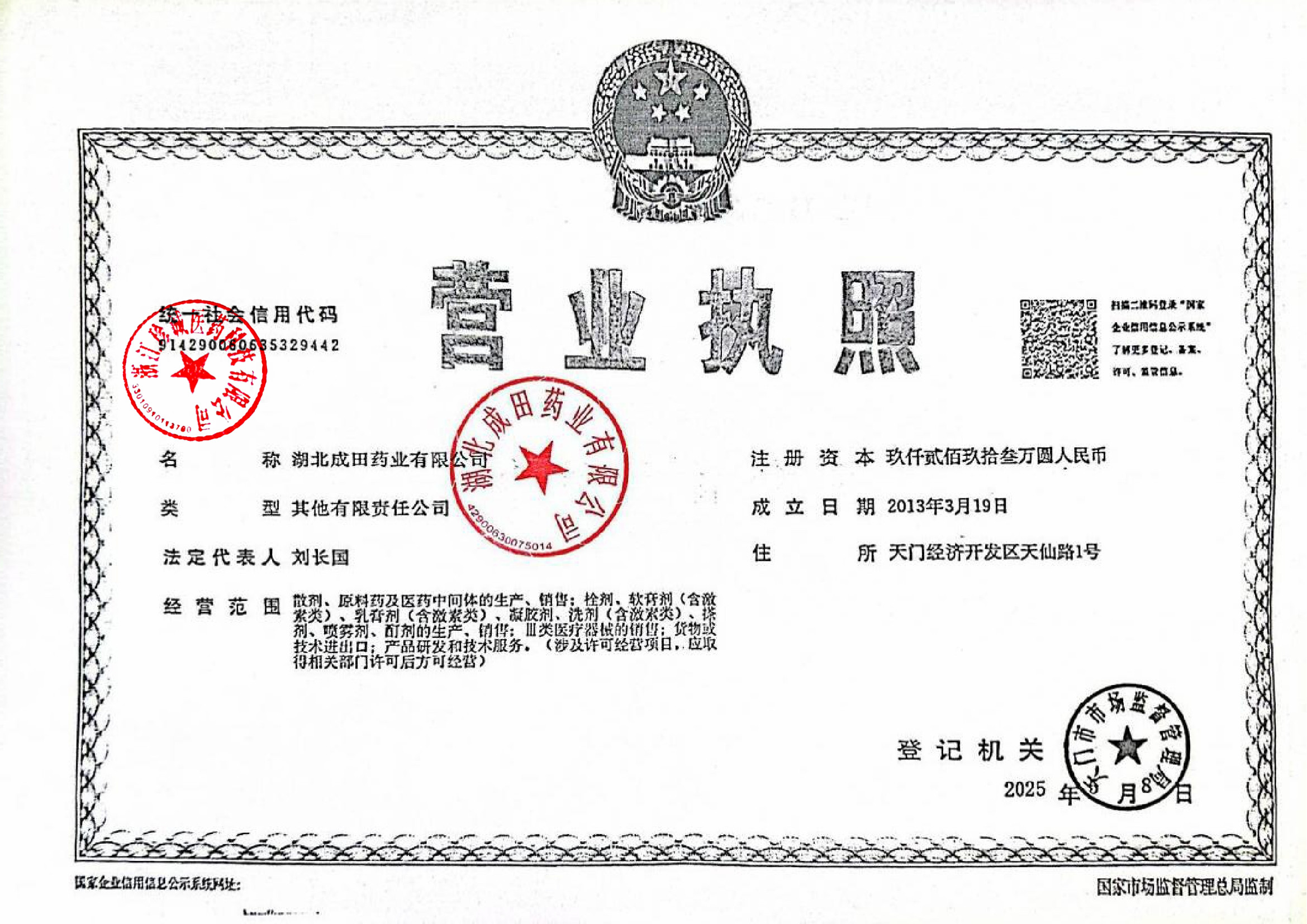 | 2 | Z99014904 | 湖北成田药业有限公司 | 营业执照 (2).jpg | Sep 28, 2025 4:34:58 PM | 查看下载 | |