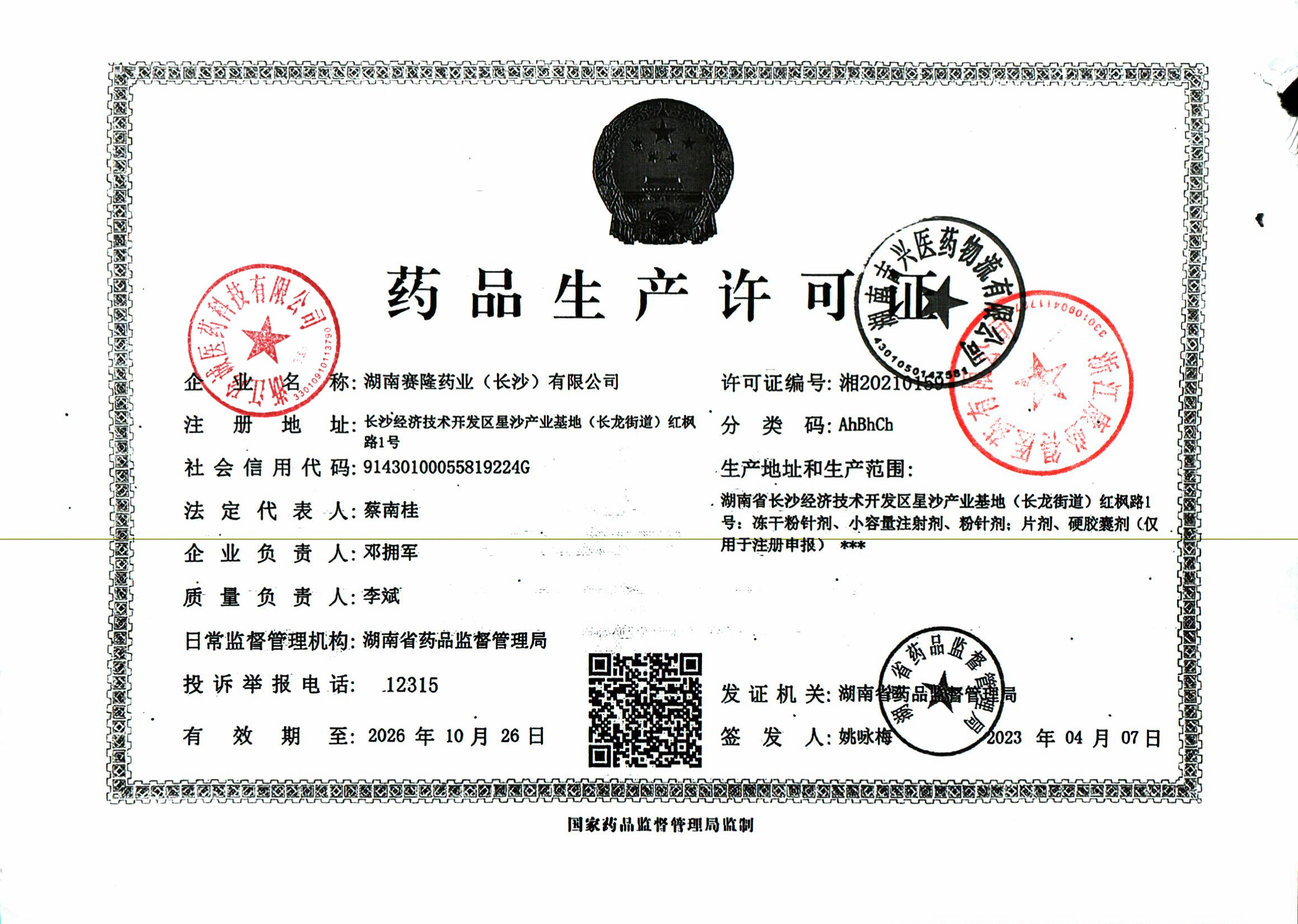 湖南赛隆药业(长沙)有限公司