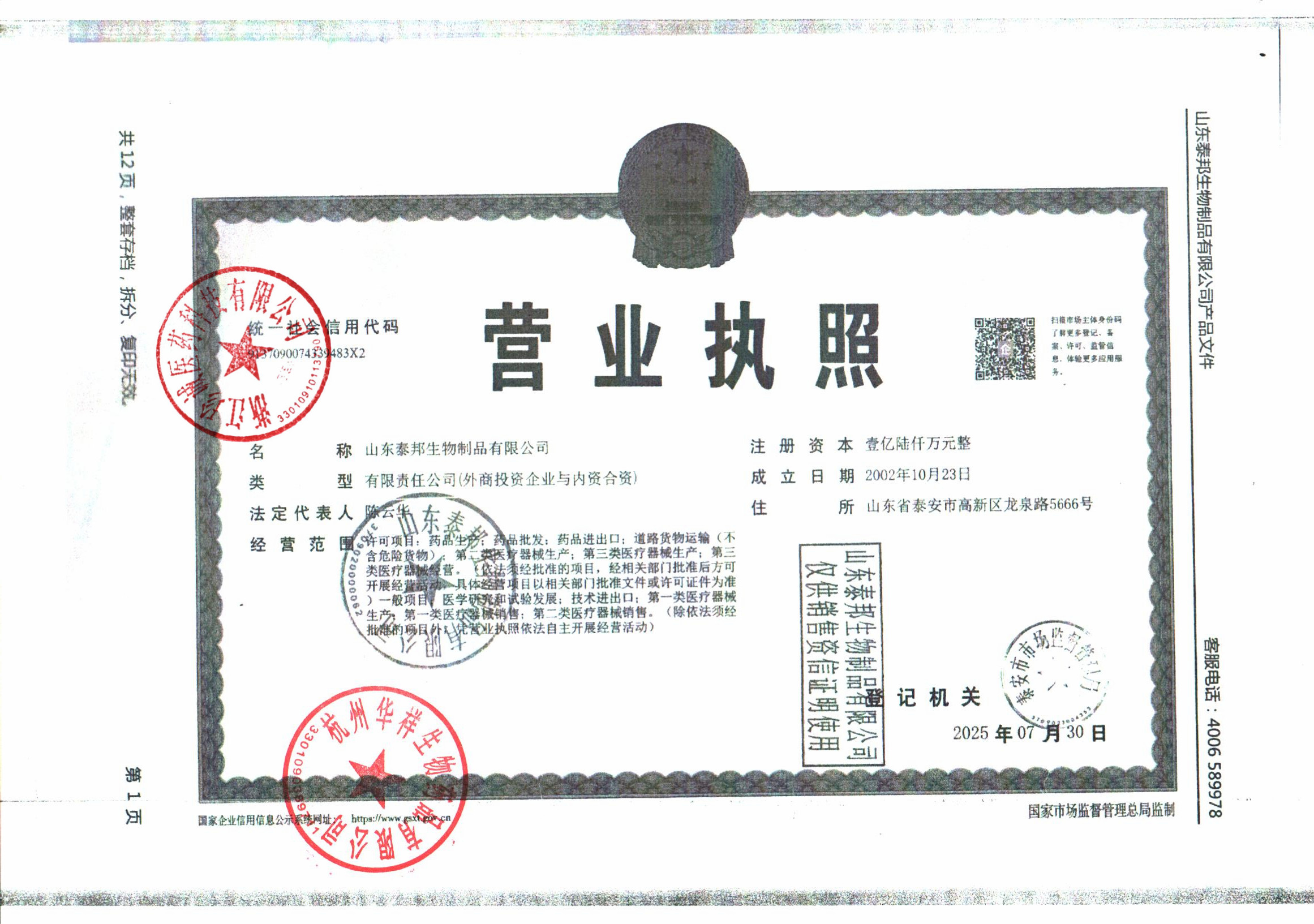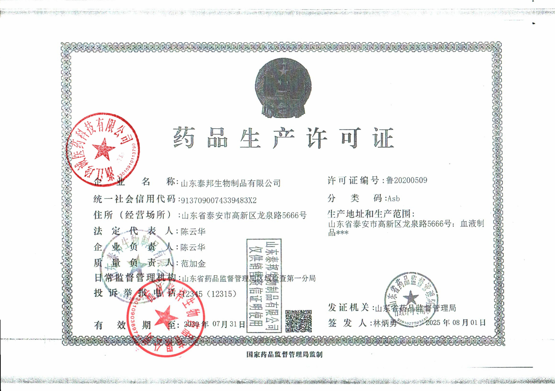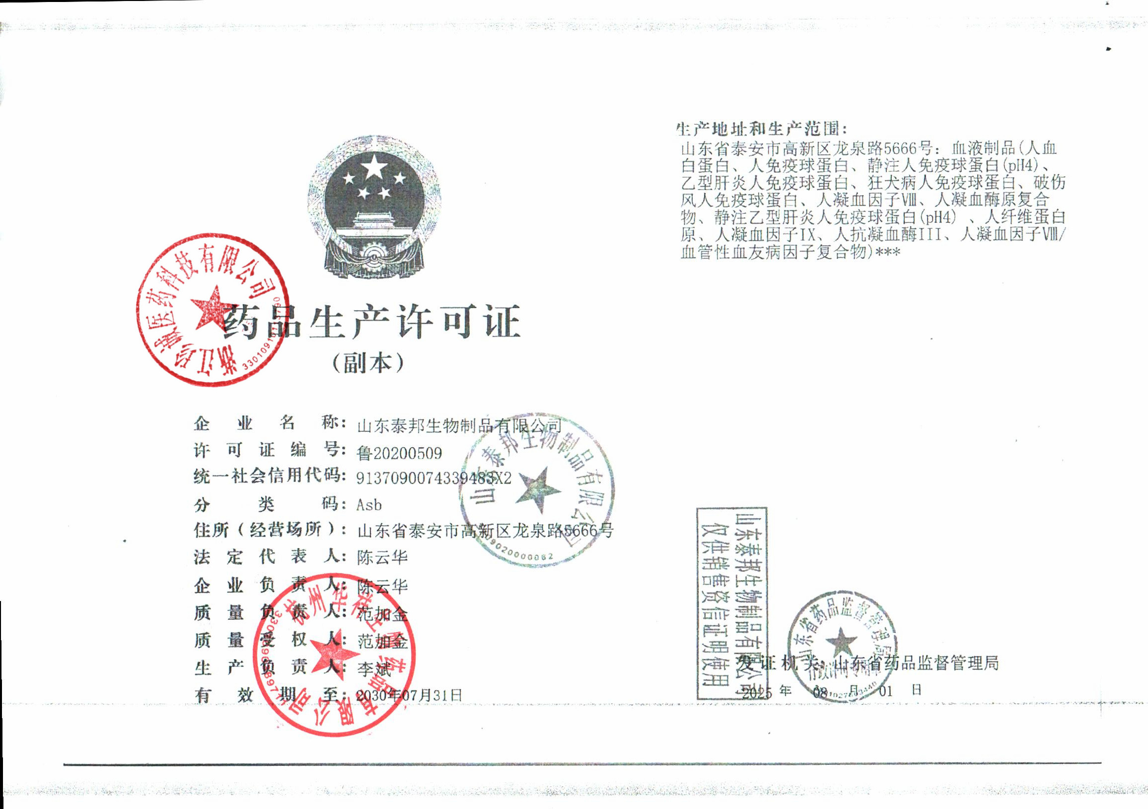 山东泰邦生物制品有限公司