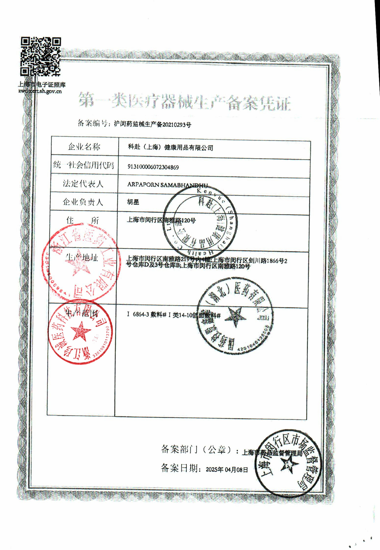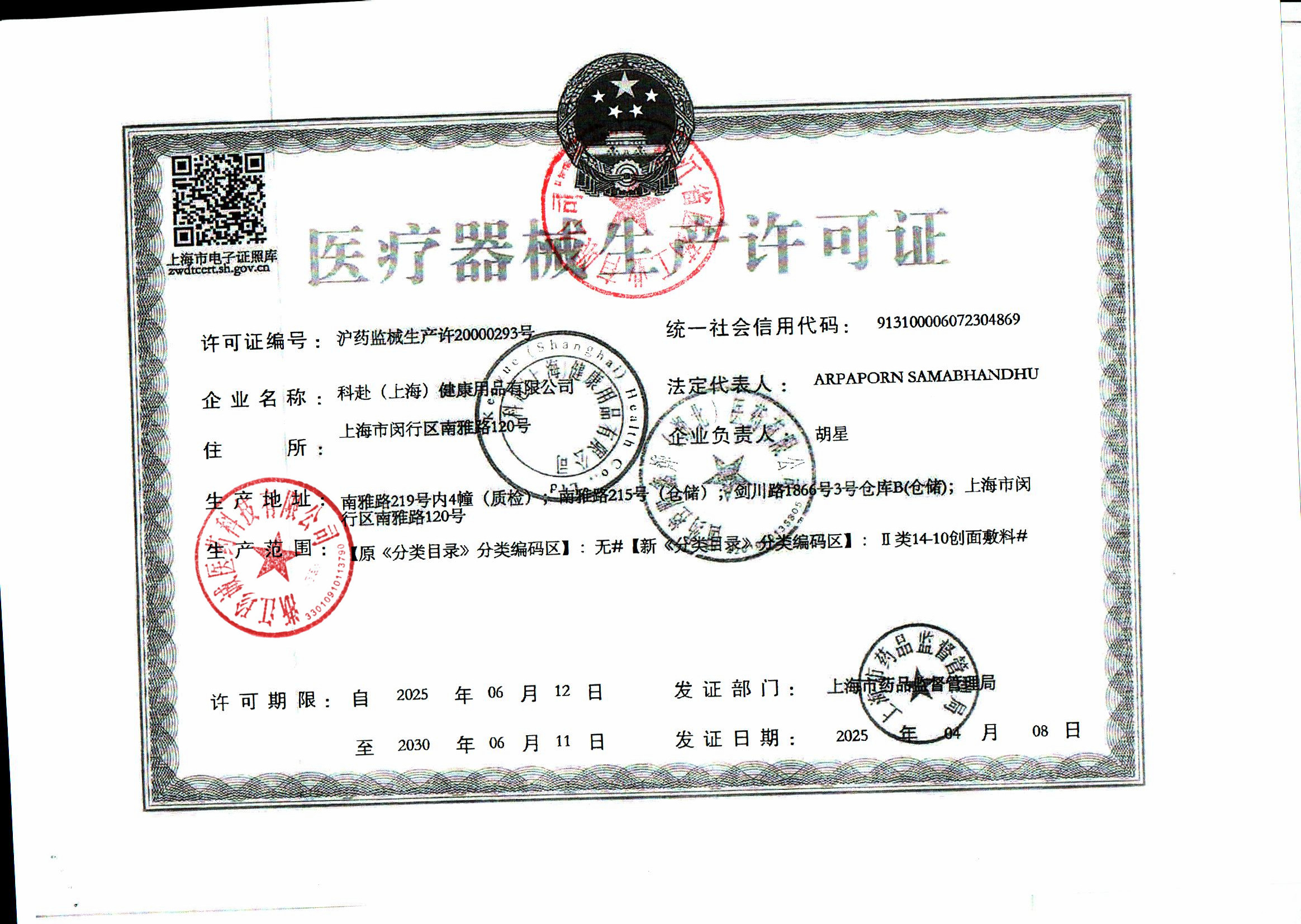 | 3 | Z99015100 | 科赴(上海)健康用品有限公司 | 医疗器械生产许可证.jpg | Nov 19, 2025 12:00:00 AM | 查看下载 | |