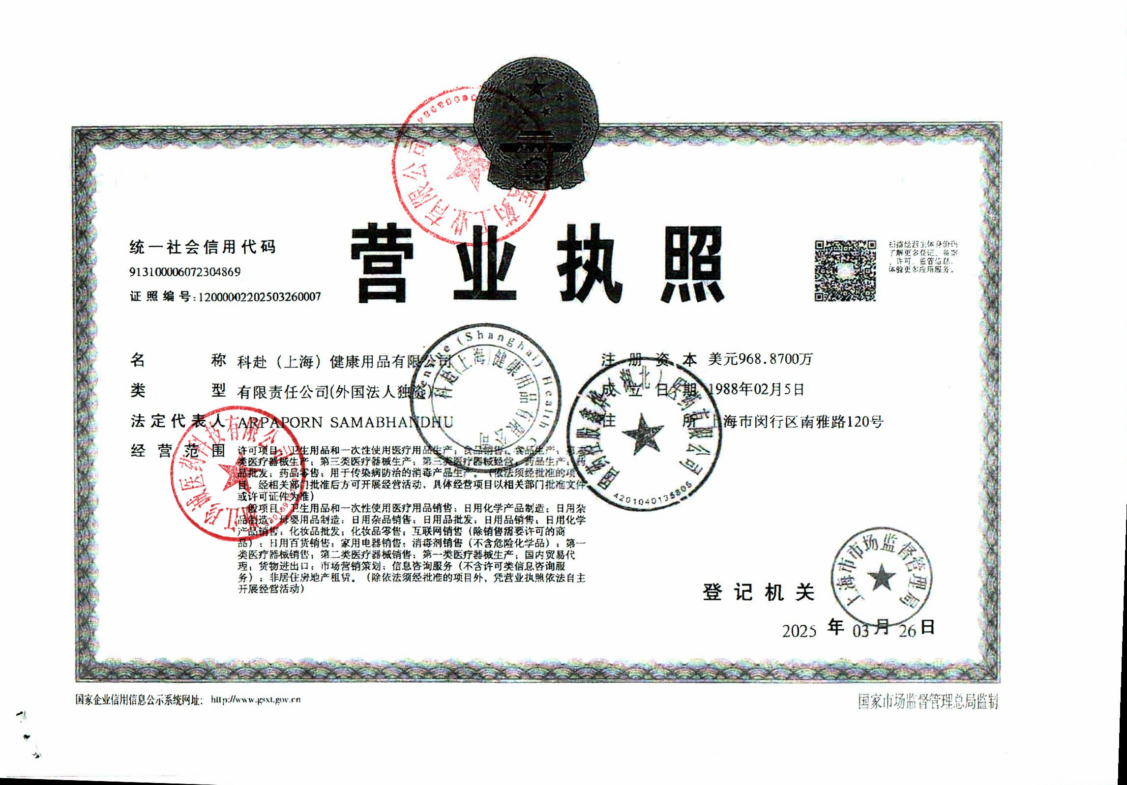 | 5 | Z99015100 | 科赴(上海)健康用品有限公司 | 营业执照.jpg | Nov 19, 2025 12:00:00 AM | 查看下载 | |