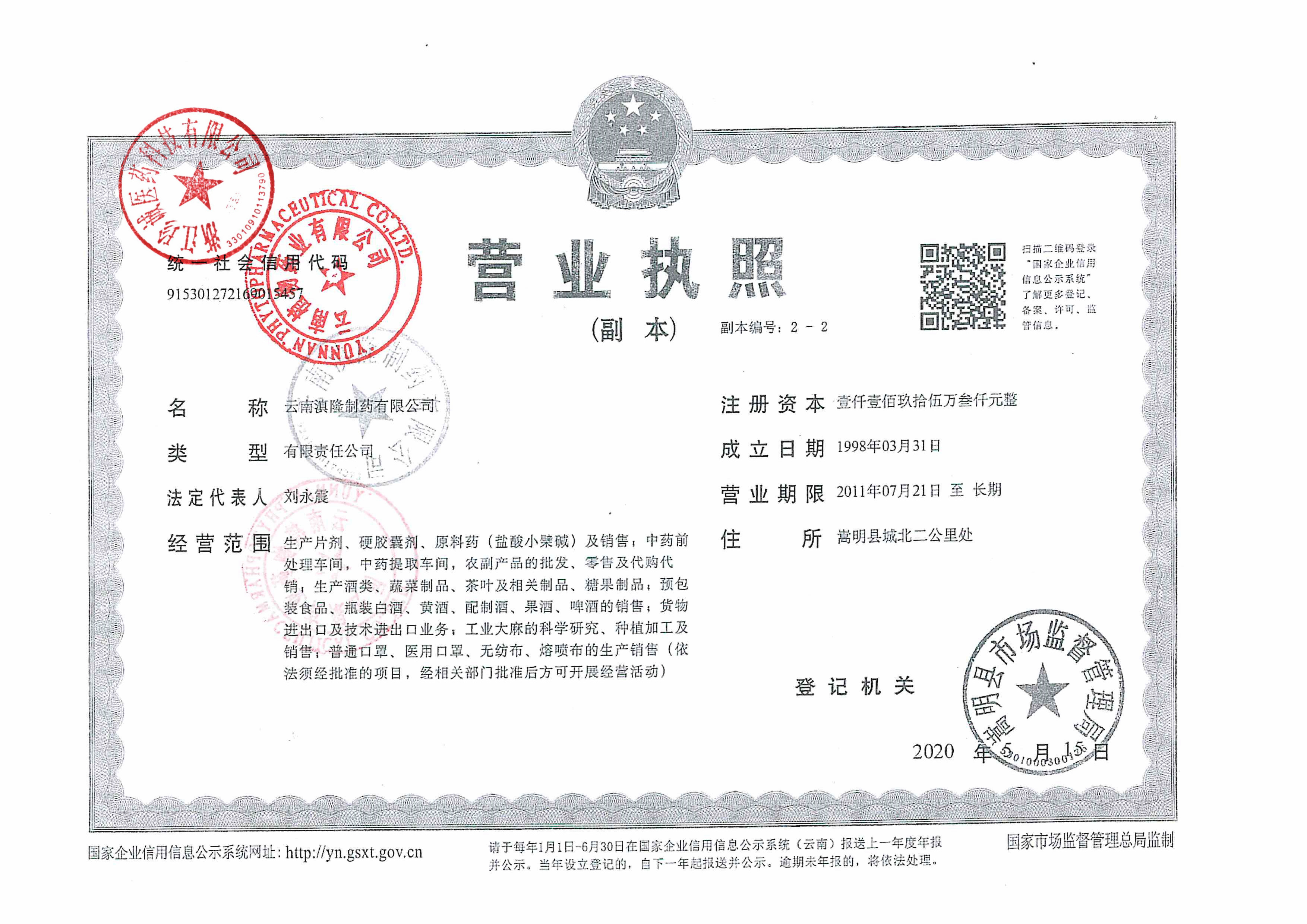 | 1 | Z99015200 | 云南滇隆制药有限公司 | 营业执照 (2).jpg | Dec 9, 2025 12:00:00 AM | 查看下载 | |
