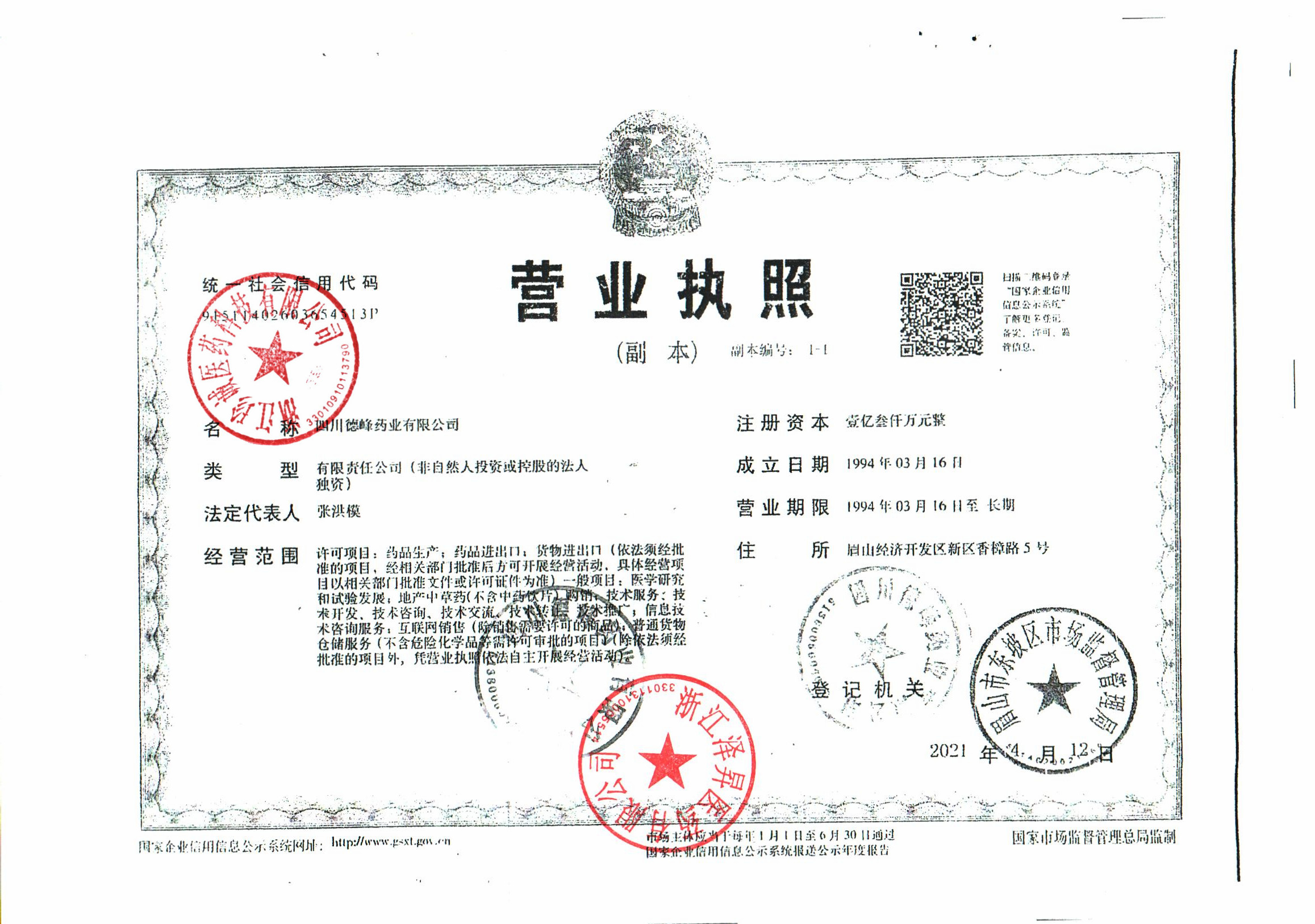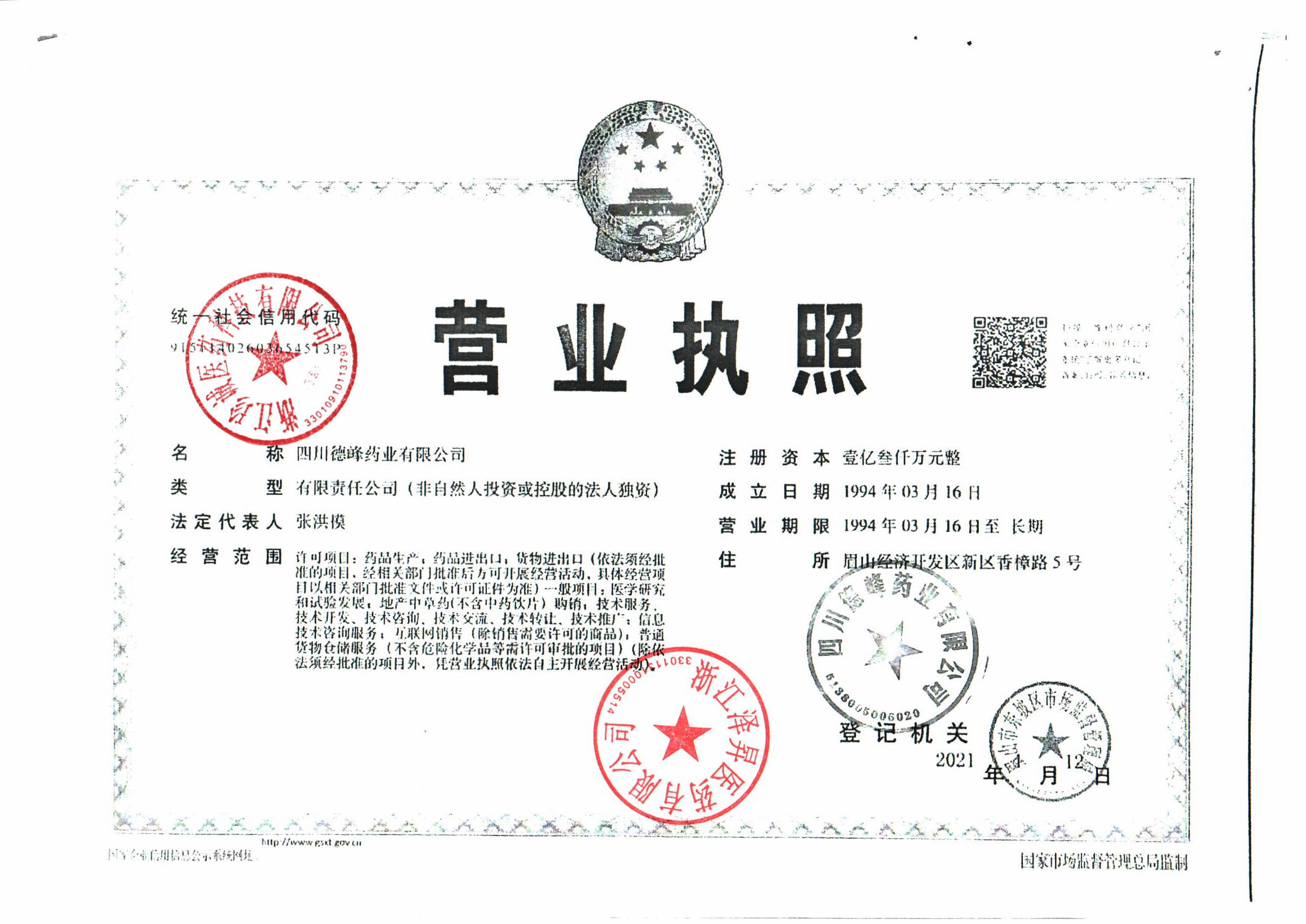 | 2 | Z99015281 | 四川德峰药业有限公司 | 营业执照1.jpg | Dec 17, 2025 2:03:19 PM | 查看下载 | |