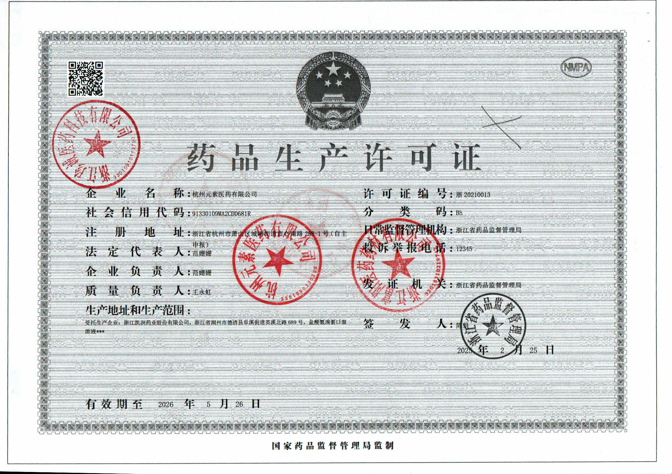 | 7 | Z99015283 | 杭州元素医药有限公司 | 许可证 (1).jpg | Dec 17, 2025 3:27:27 PM | 查看下载 | |