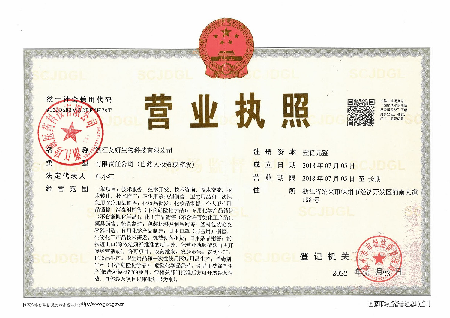 2 Z99015441 浙江艾妍生物科技有限公司 许可证.jpg Jan 15, 2026 3:42:46 PM 查看下载