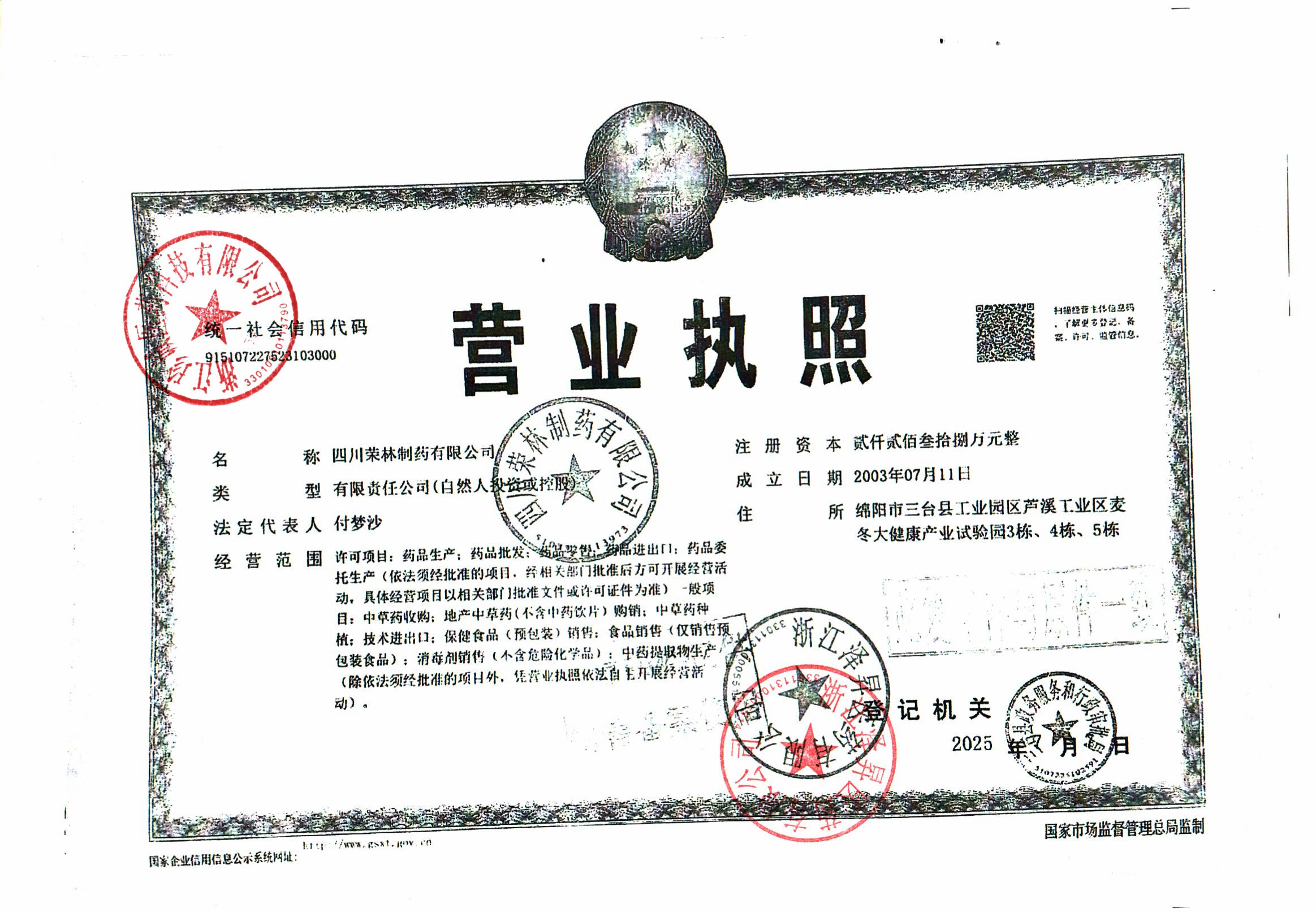 | 5 | Z99015501 | 四川荣林制药有限公司 | 营业执照.jpg | Jan 28, 2026 10:07:03 AM | 查看下载 |