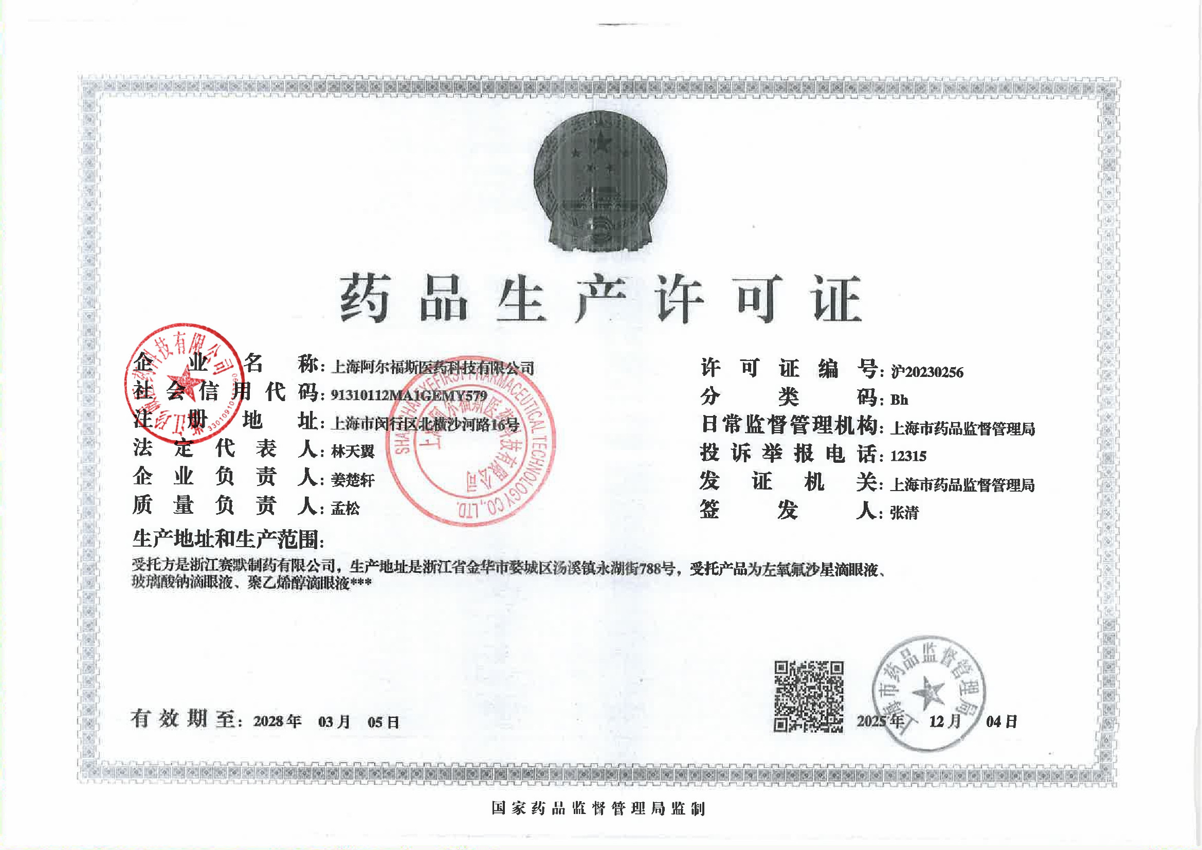 | 4 | Z99015720 | 上海阿尔福斯医药科技有限公司 | 委托生产.jpg | Mar 4, 2026 2:25:33 PM | 查看下载 | |
