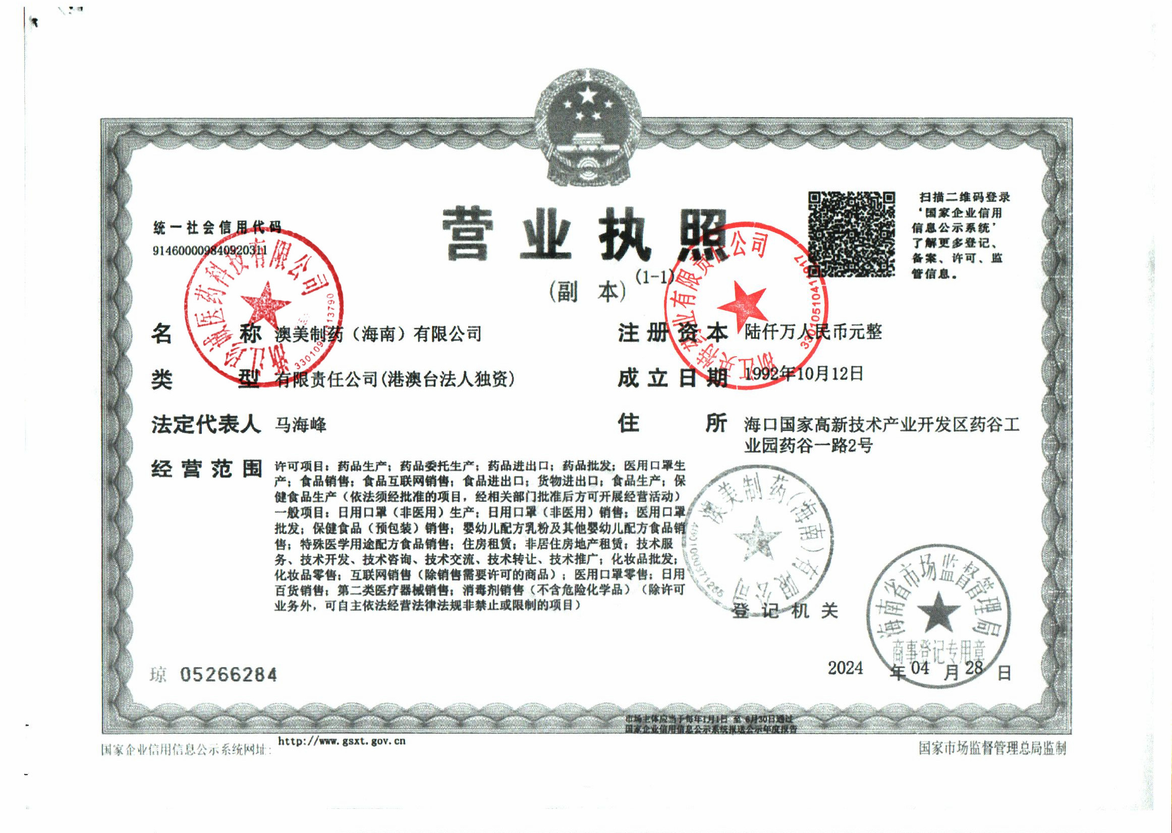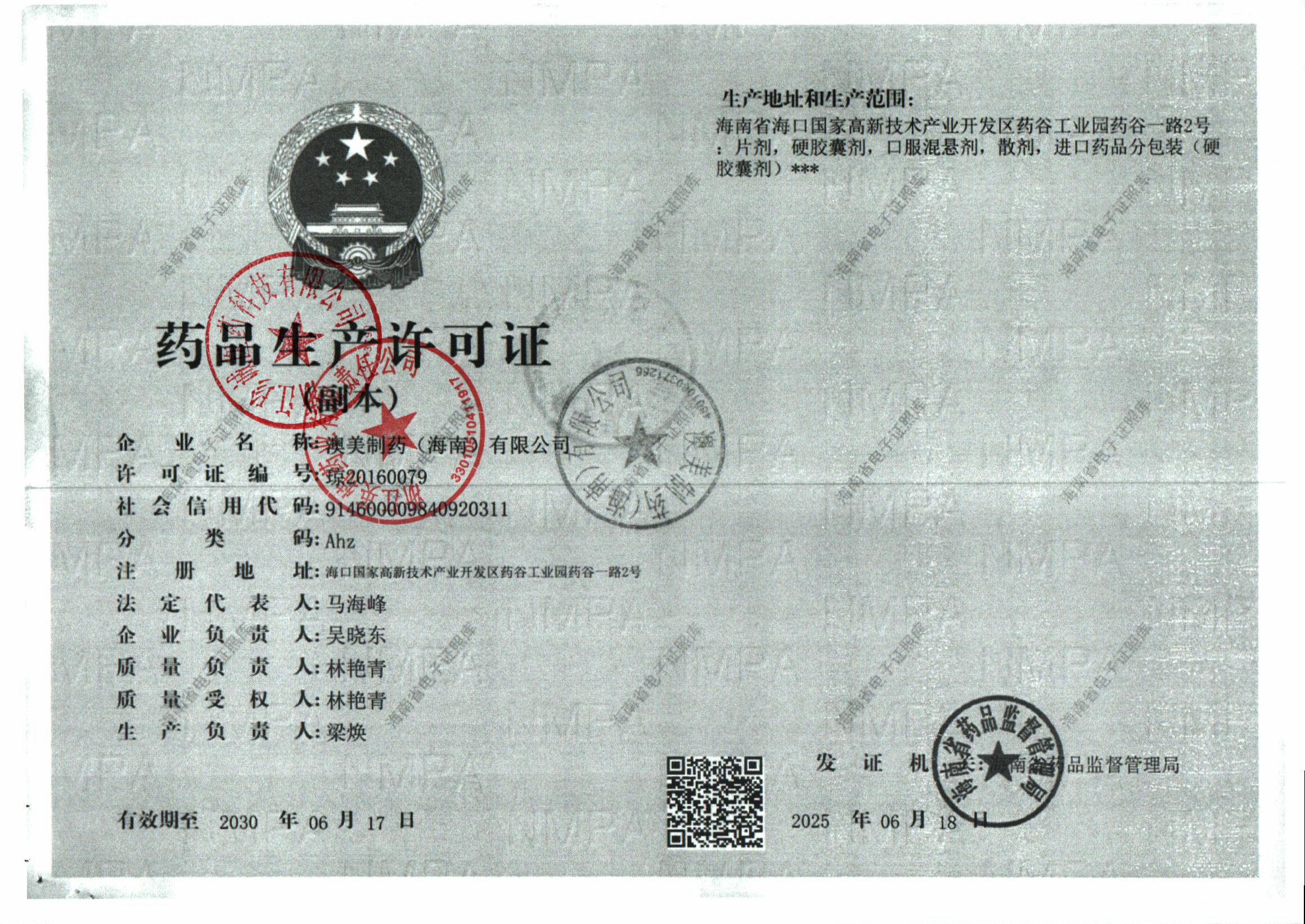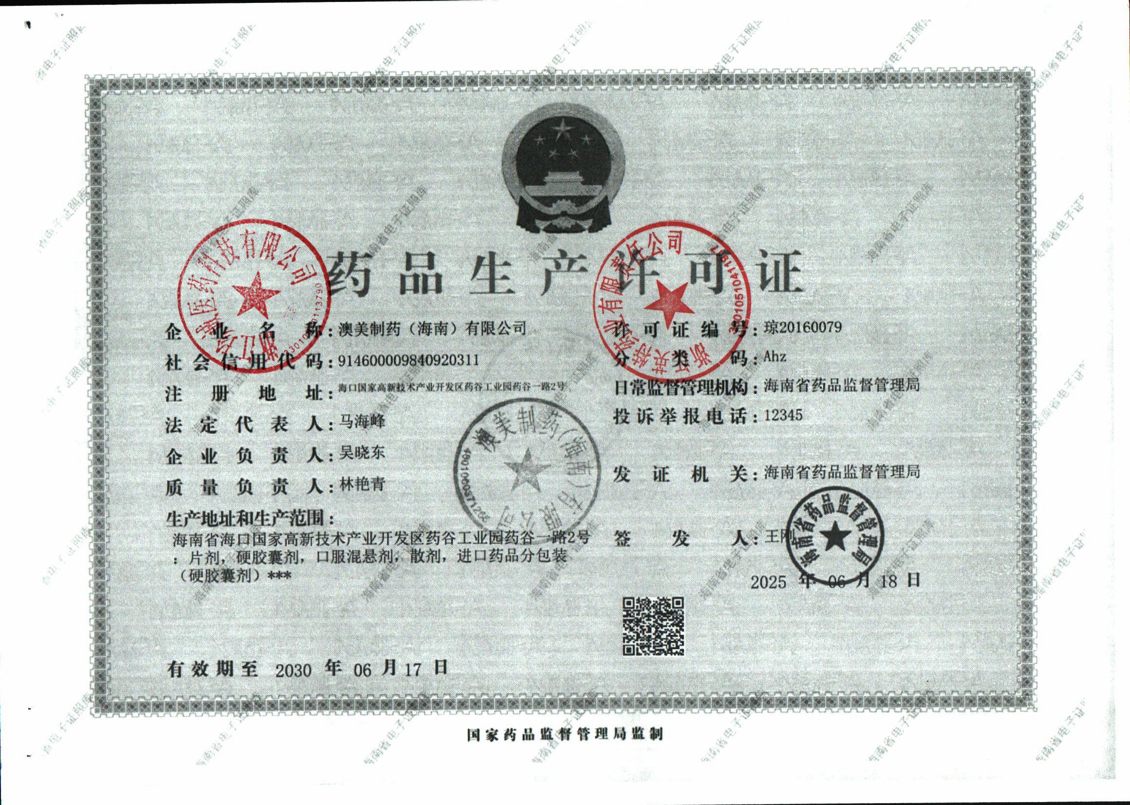 | 2 | Z99015740 | 澳美制药(海南)有限公司 | 许可证 (2).jpg | Mar 5, 2026 11:19:14 AM | 查看下载 | |