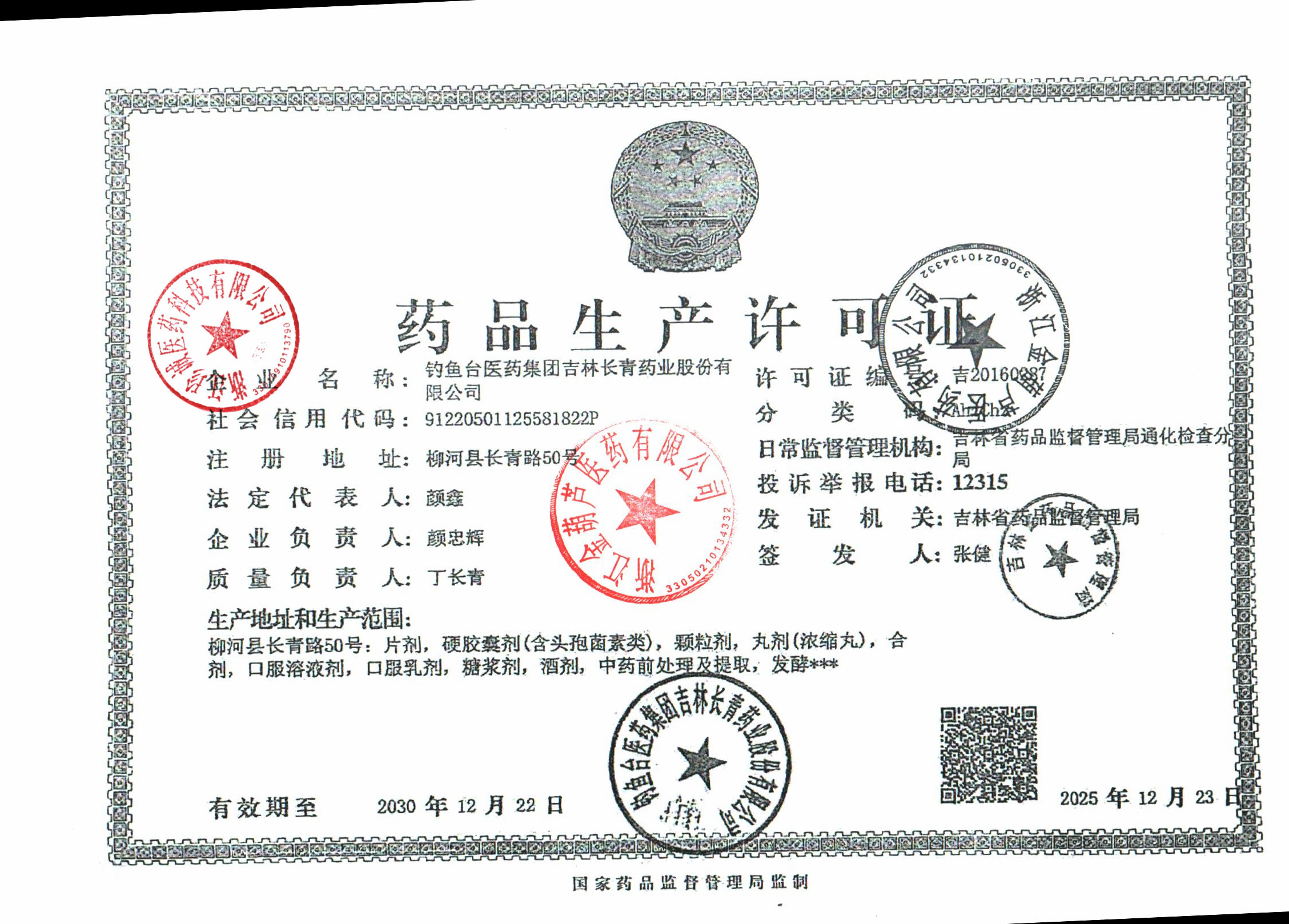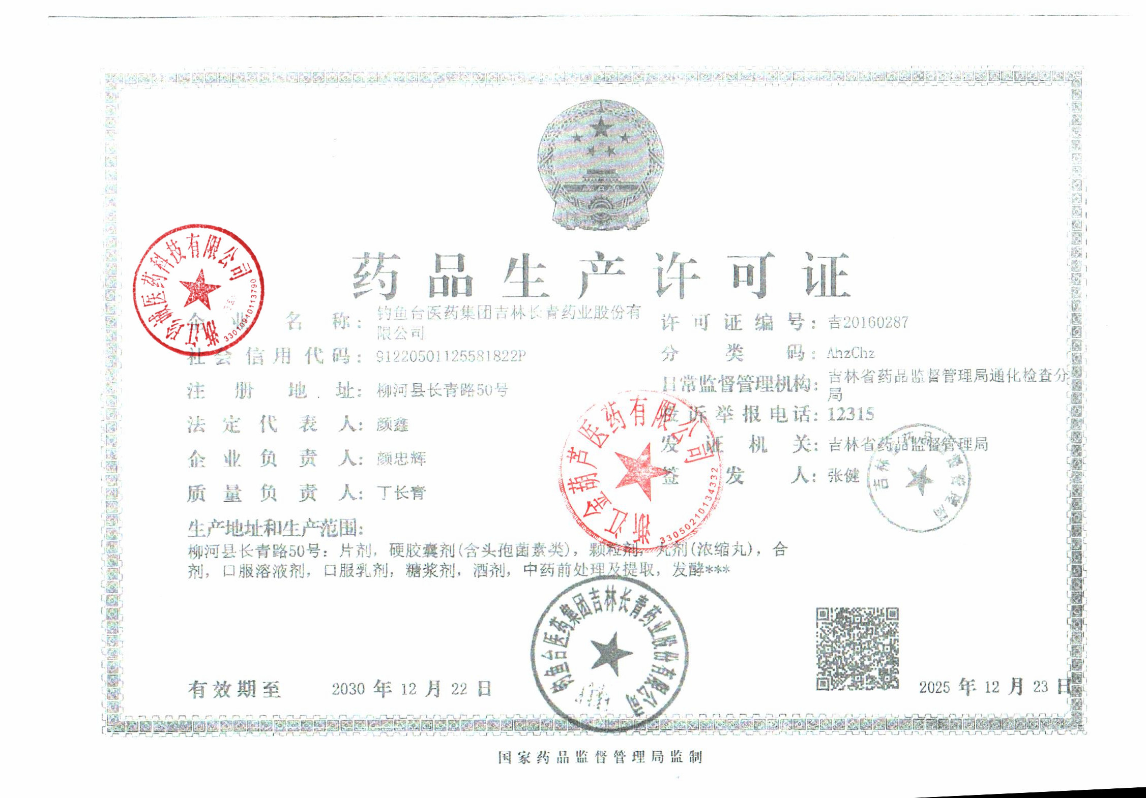 钓鱼台医药集团吉林长青药业股份有限公司
