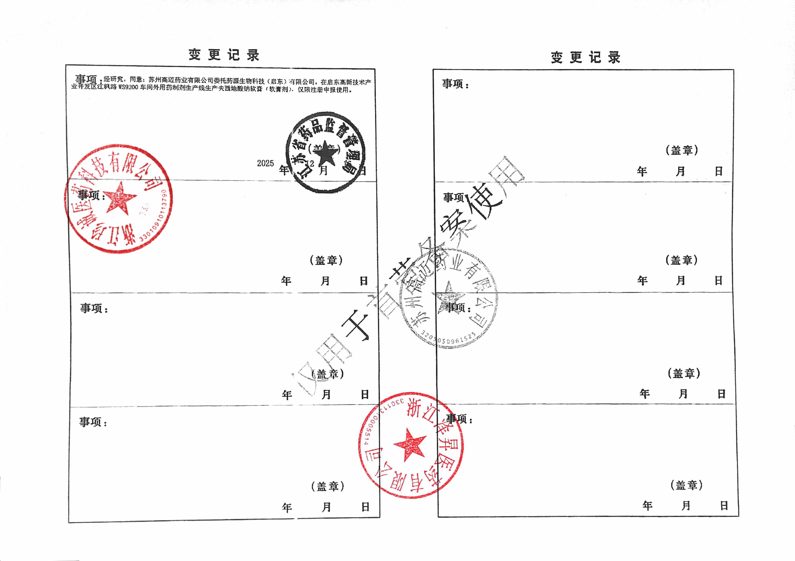 | 5 | Z99015960 | 苏州高迈药业有限公司 | 变更记录 (3).jpg | Apr 3, 2026 8:56:25 AM | 查看下载 | |