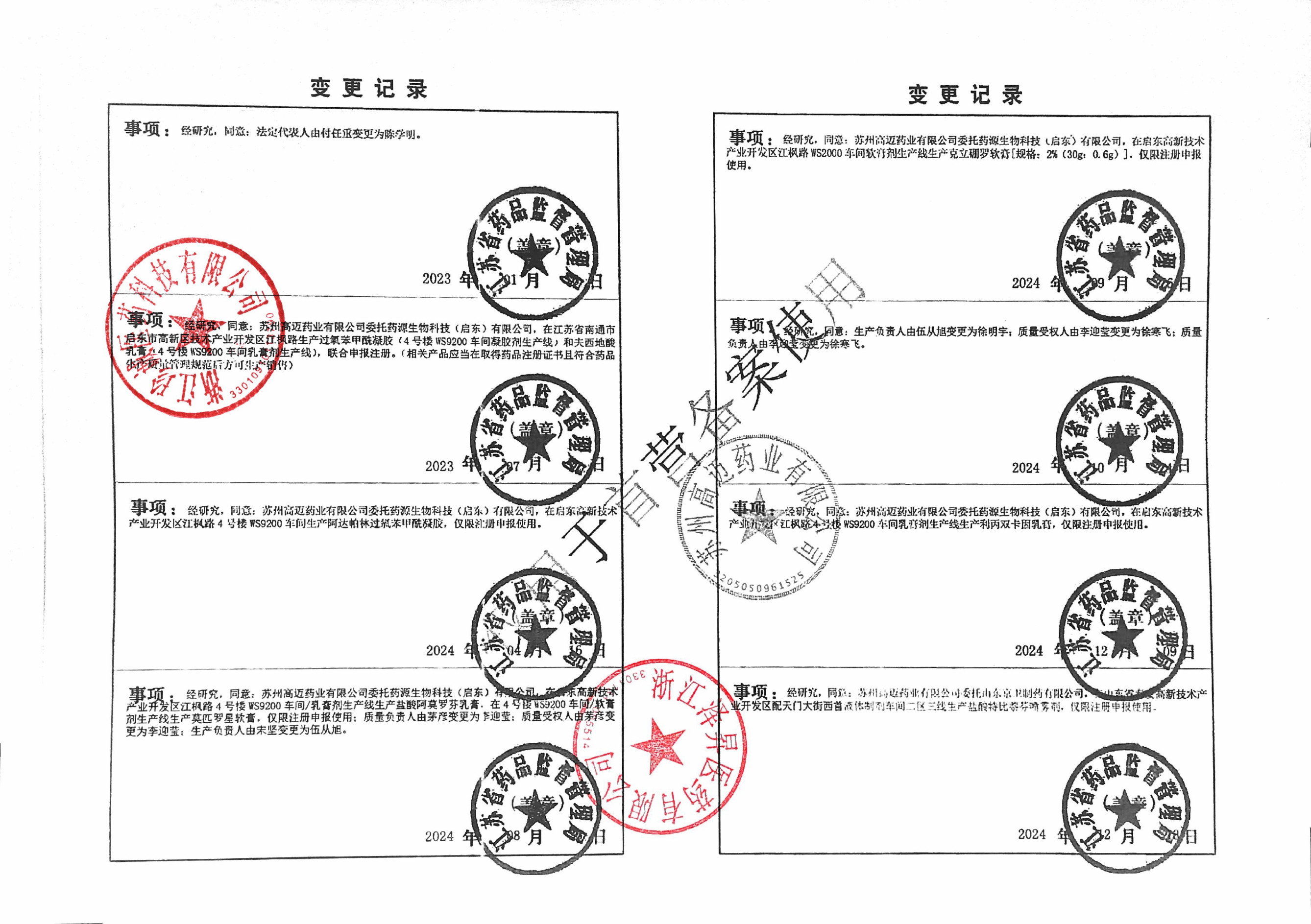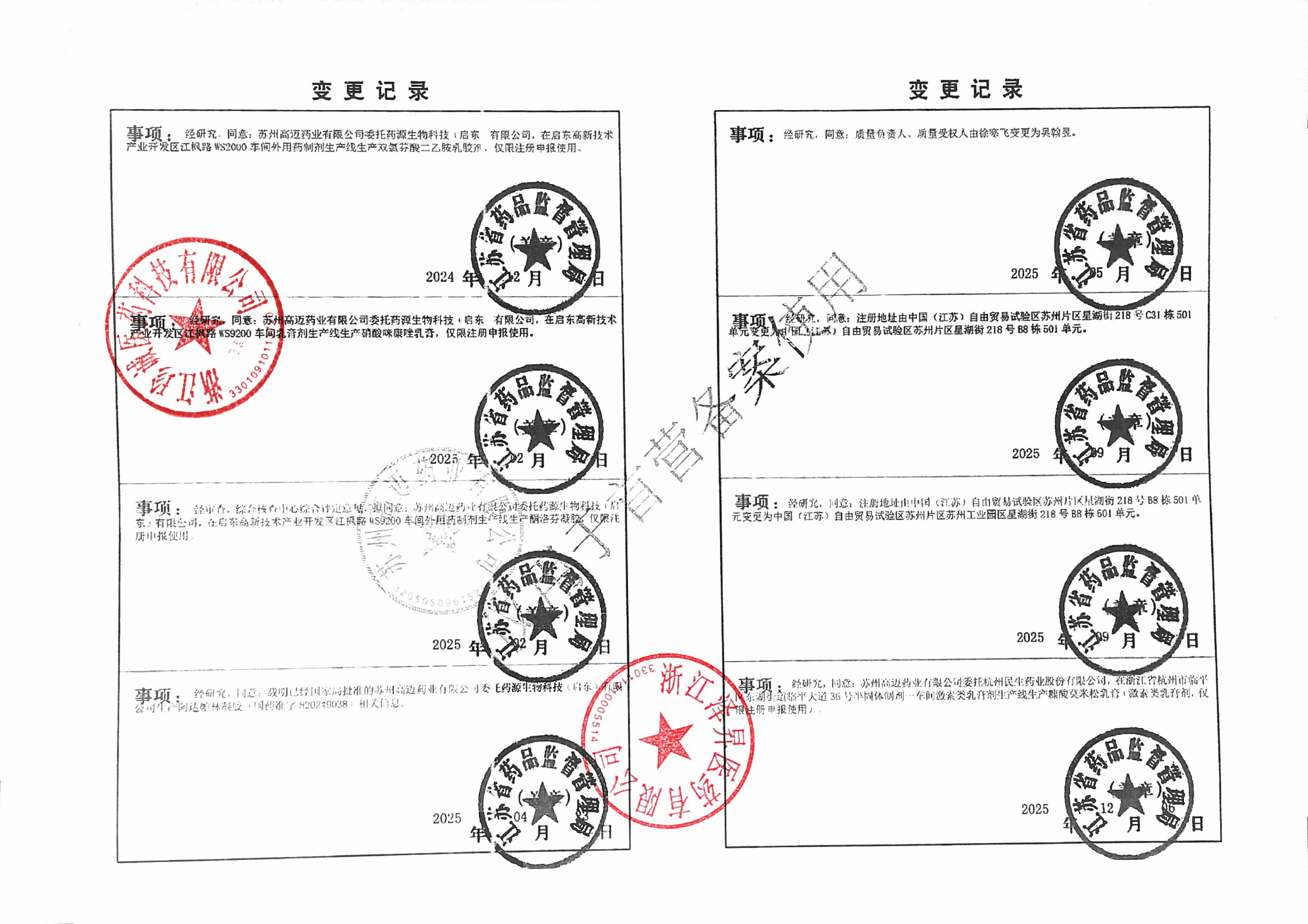 | 6 | Z99015960 | 苏州高迈药业有限公司 | 变更记录 (2).jpg | Apr 3, 2026 8:56:25 AM | 查看下载 | |