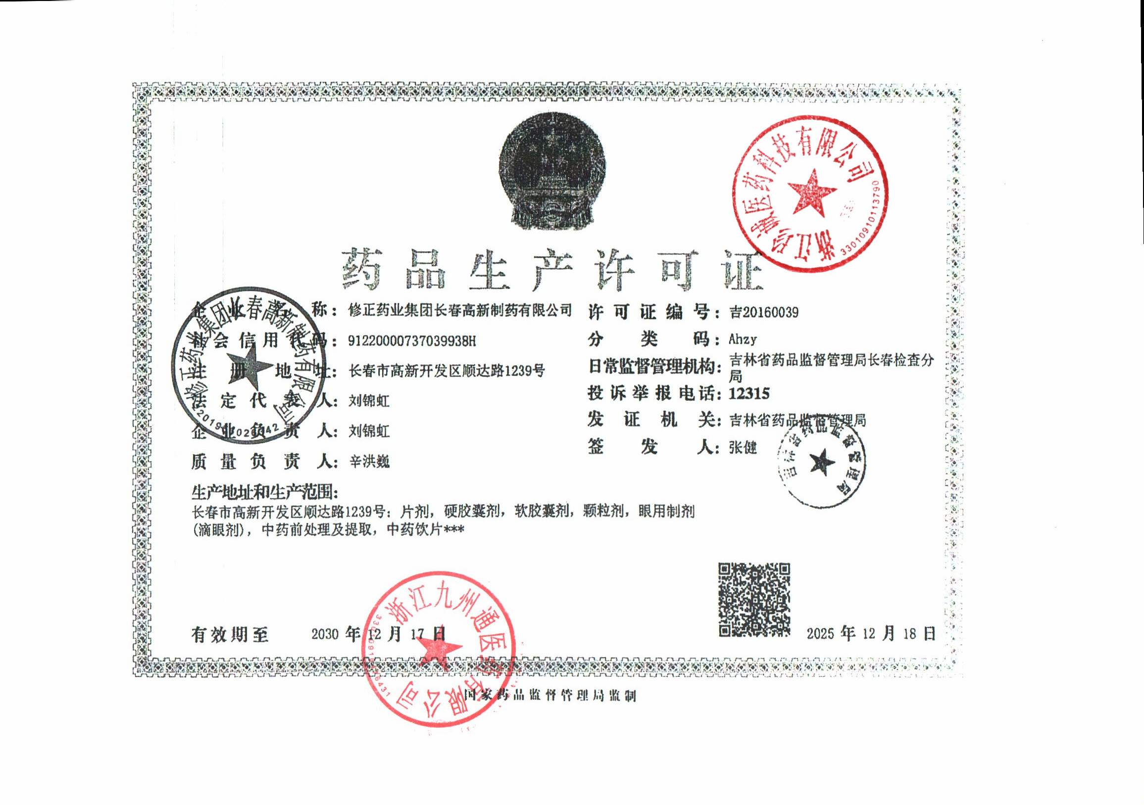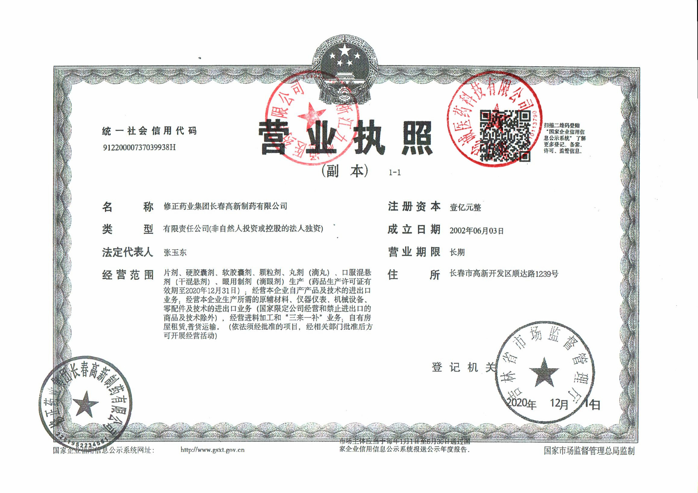 | 1 | Z99016040 | 修正药业集团长春高新制药有限公司 | 营业执照.jpg | Apr 10, 2026 1:07:34 PM | 查看下载 | |