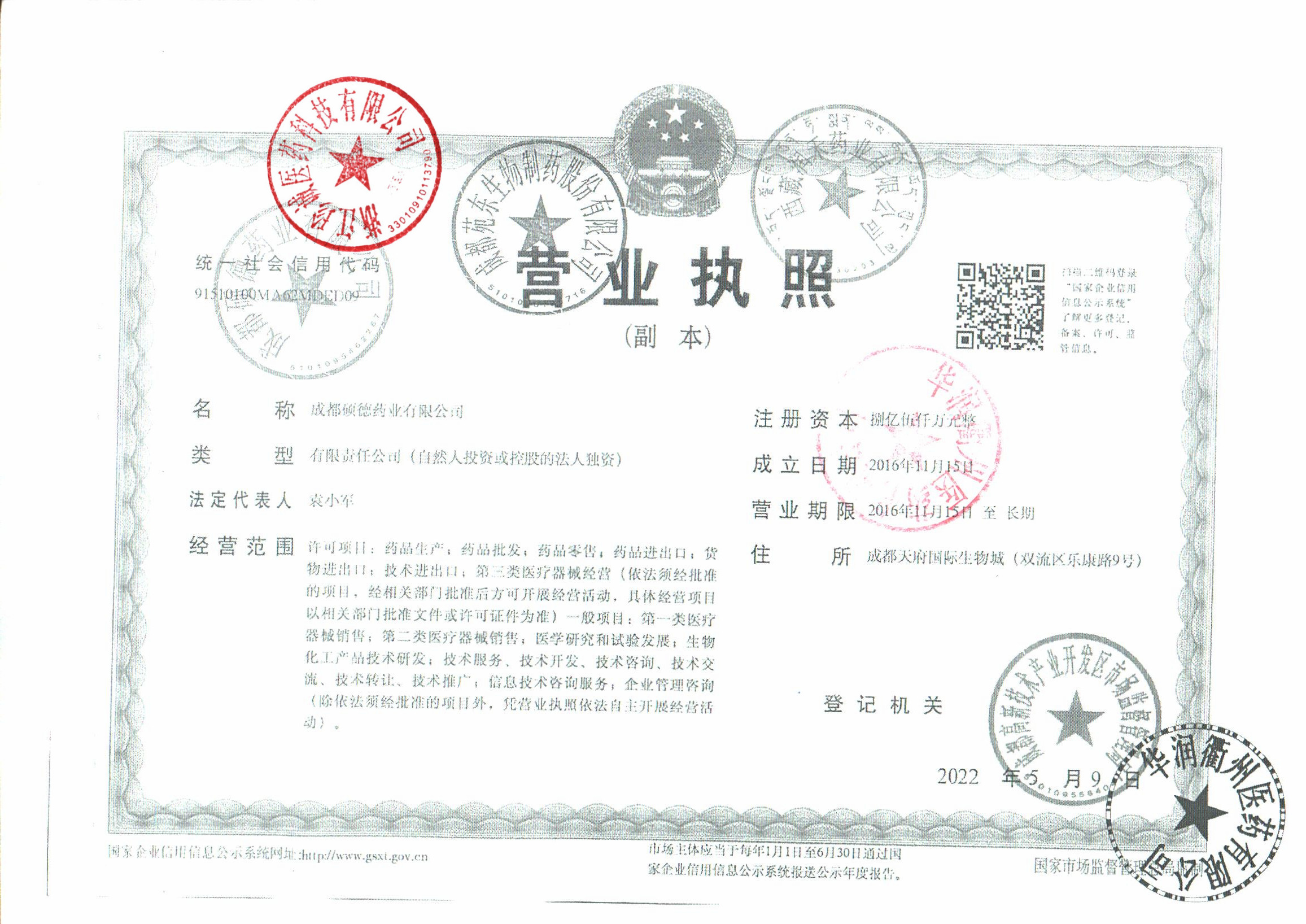 | 1 | Z99016042 | 成都硕迪药业有限公司 | 营业执照 (2).jpg | Apr 10, 2026 1:21:23 PM | 查看下载 | |