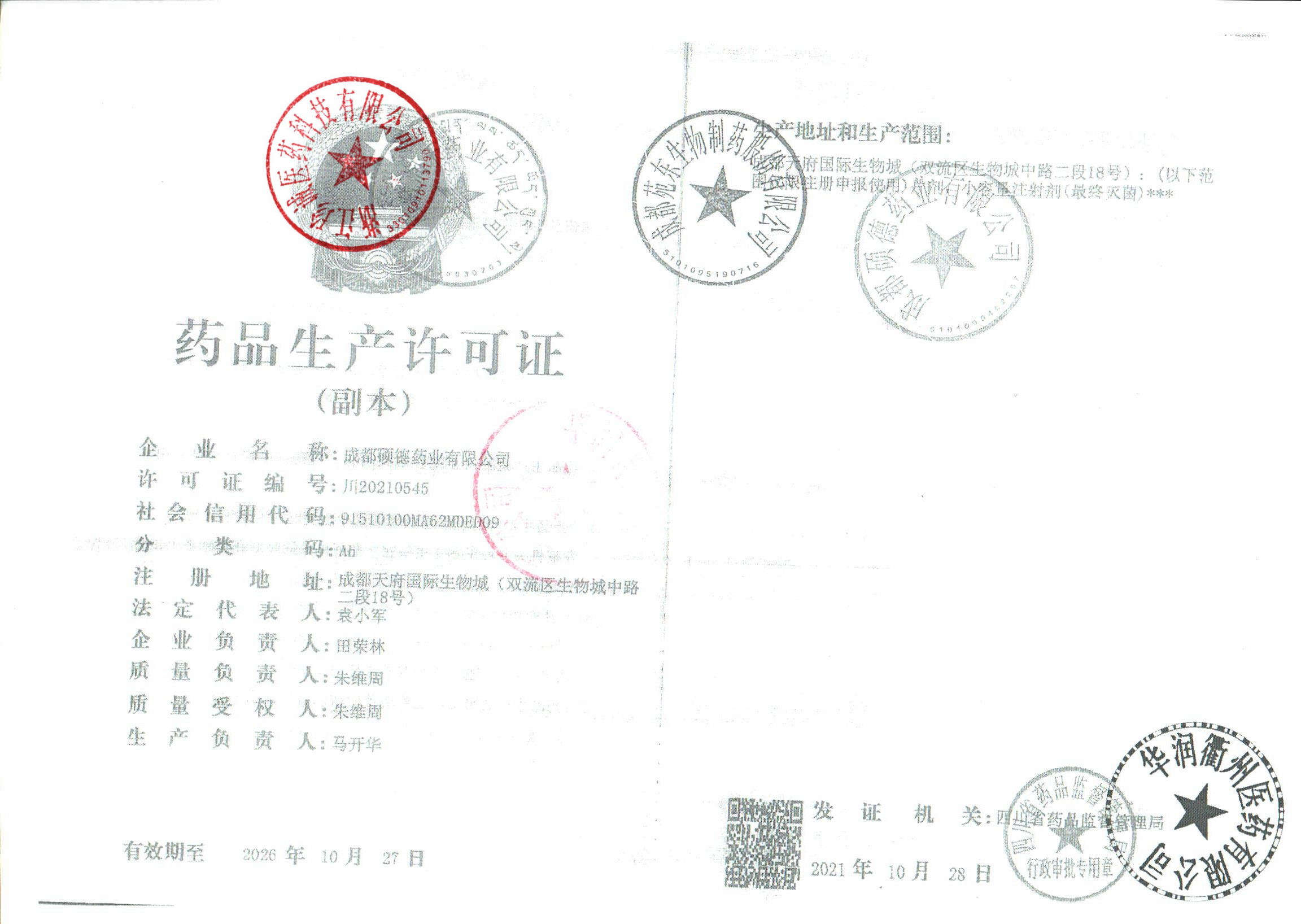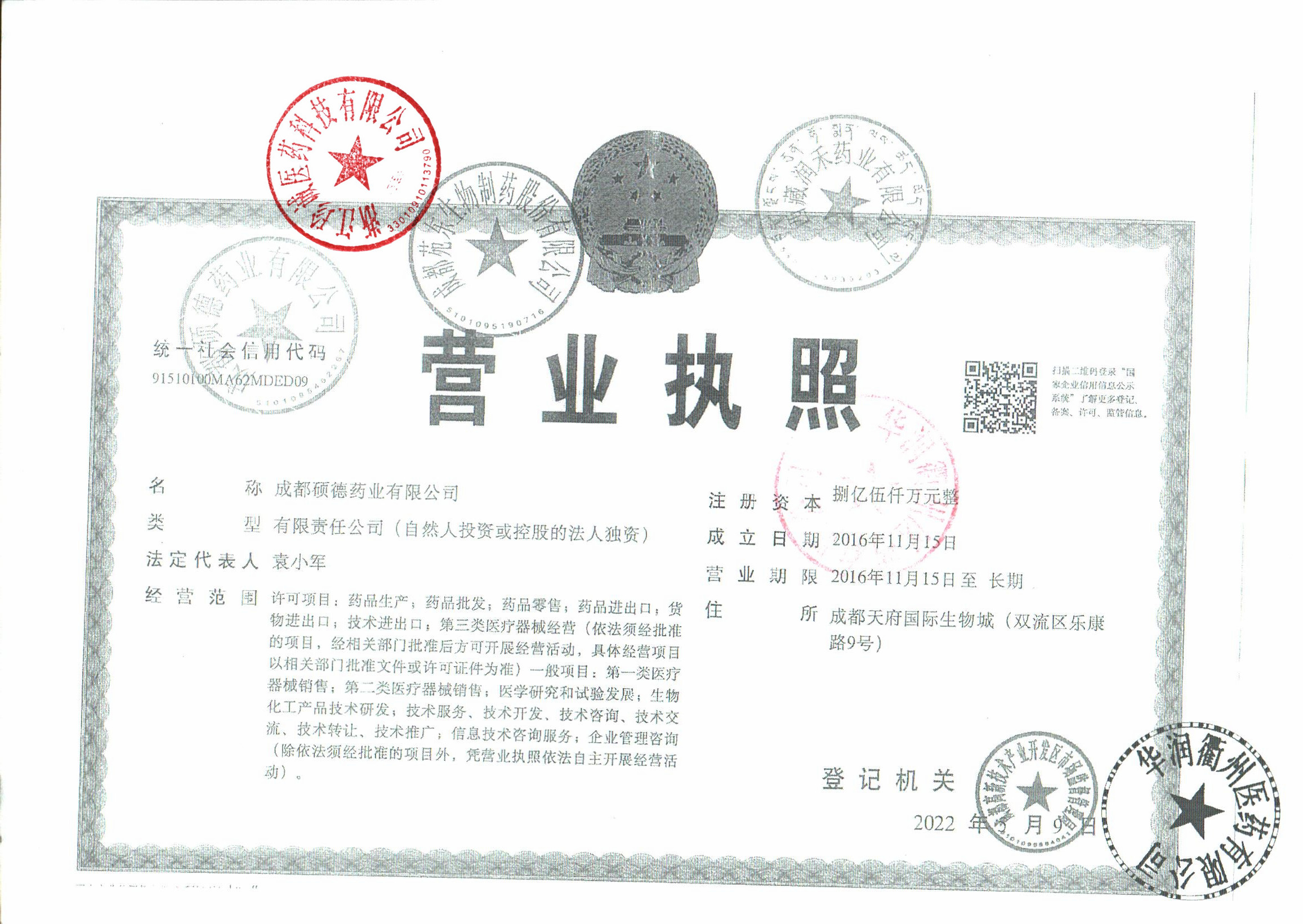 | 2 | Z99016042 | 成都硕迪药业有限公司 | 营业执照 (1).jpg | Apr 10, 2026 1:21:23 PM | 查看下载 | |